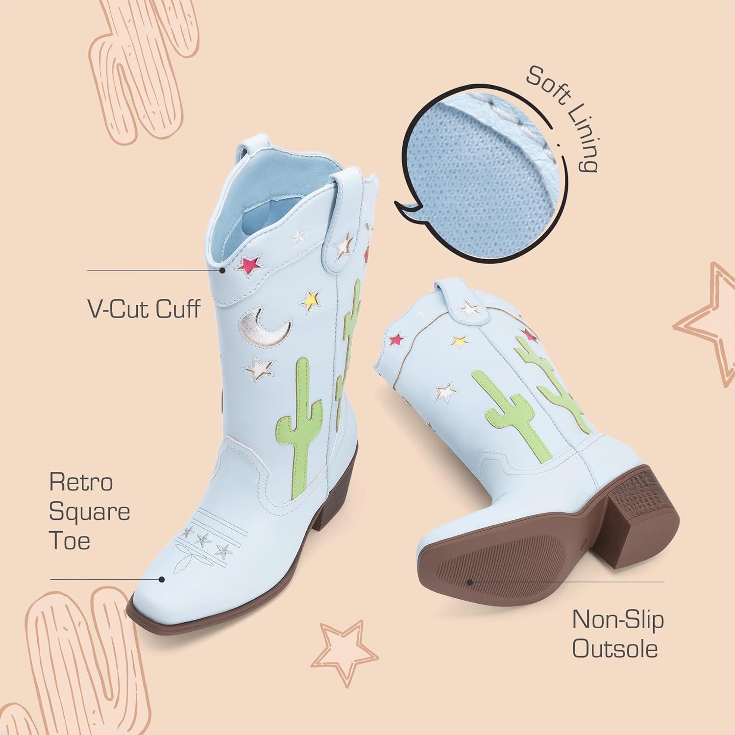 Get up to 70% off on DREAM PAIRS Girls Cowboy Boots Cowgirl Mid Calf Western Boots with Low Heel Square Toe for Little Kid/Big Kid(Silver) styles during our end-of-season clearance event.