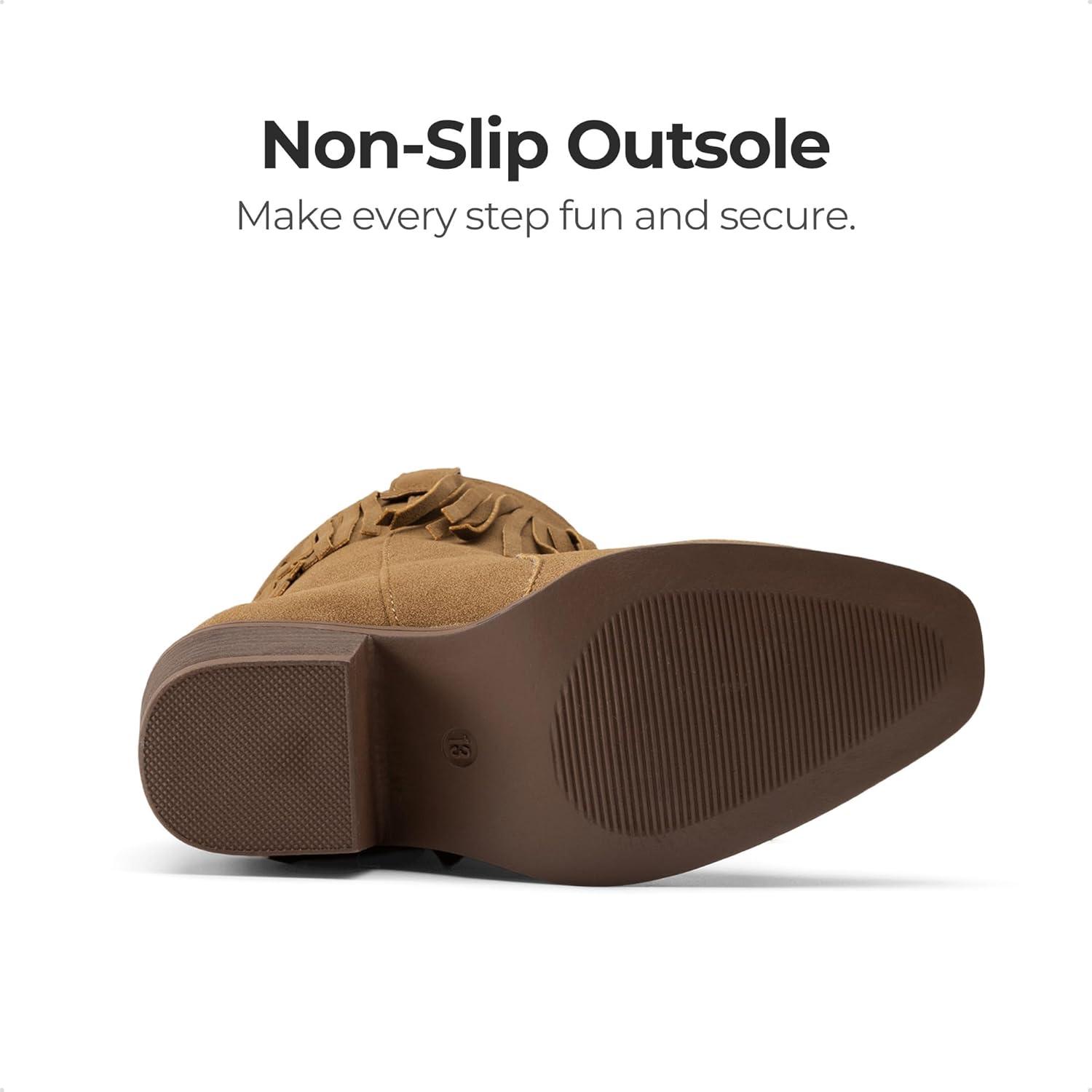 DREAM PAIRS Girls Cowboy Boots with Tassel Fringe Cowgirl Boots Kids Western Boots Stylish & Comfortable(Brown)