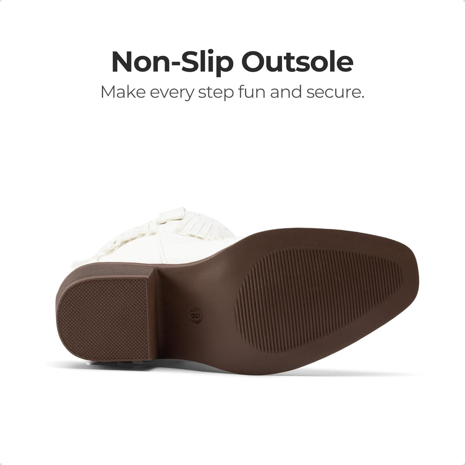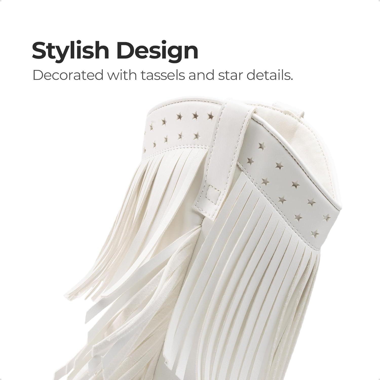 DREAM PAIRS Girls Cowboy Boots with Tassel Fringe Cowgirl Boots Kids Western Boots Stylish & Comfortable(White)
