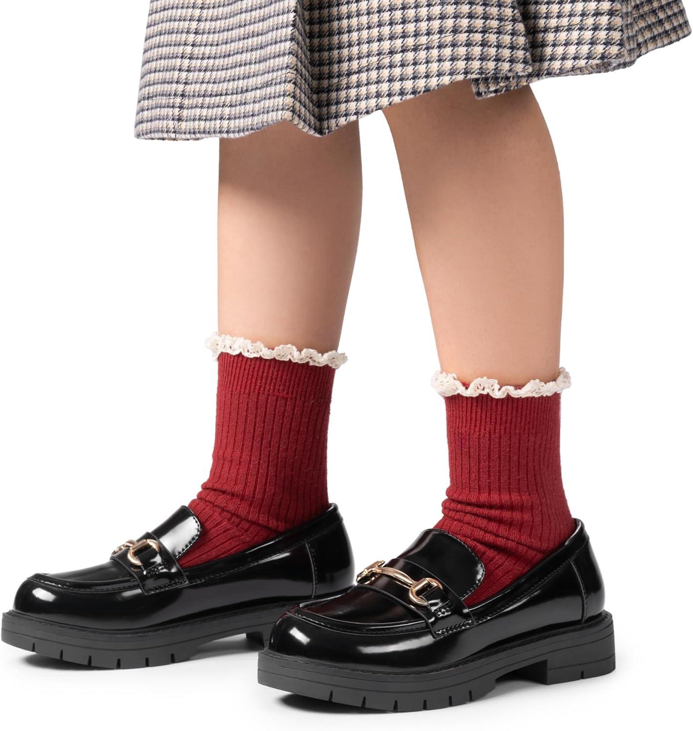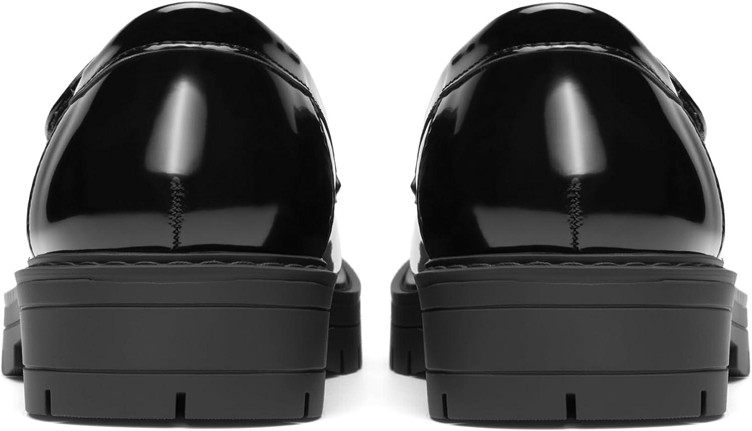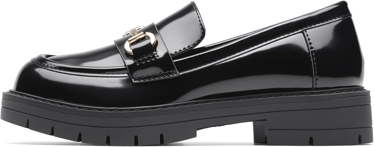 DREAM PAIRS Girls Loafers Chunky Platform Slip On Loafers School Uniform Dress Shoes(Black-patent)