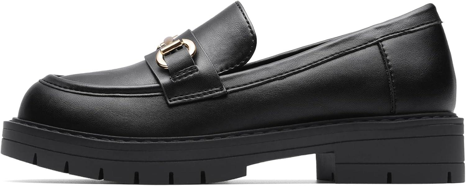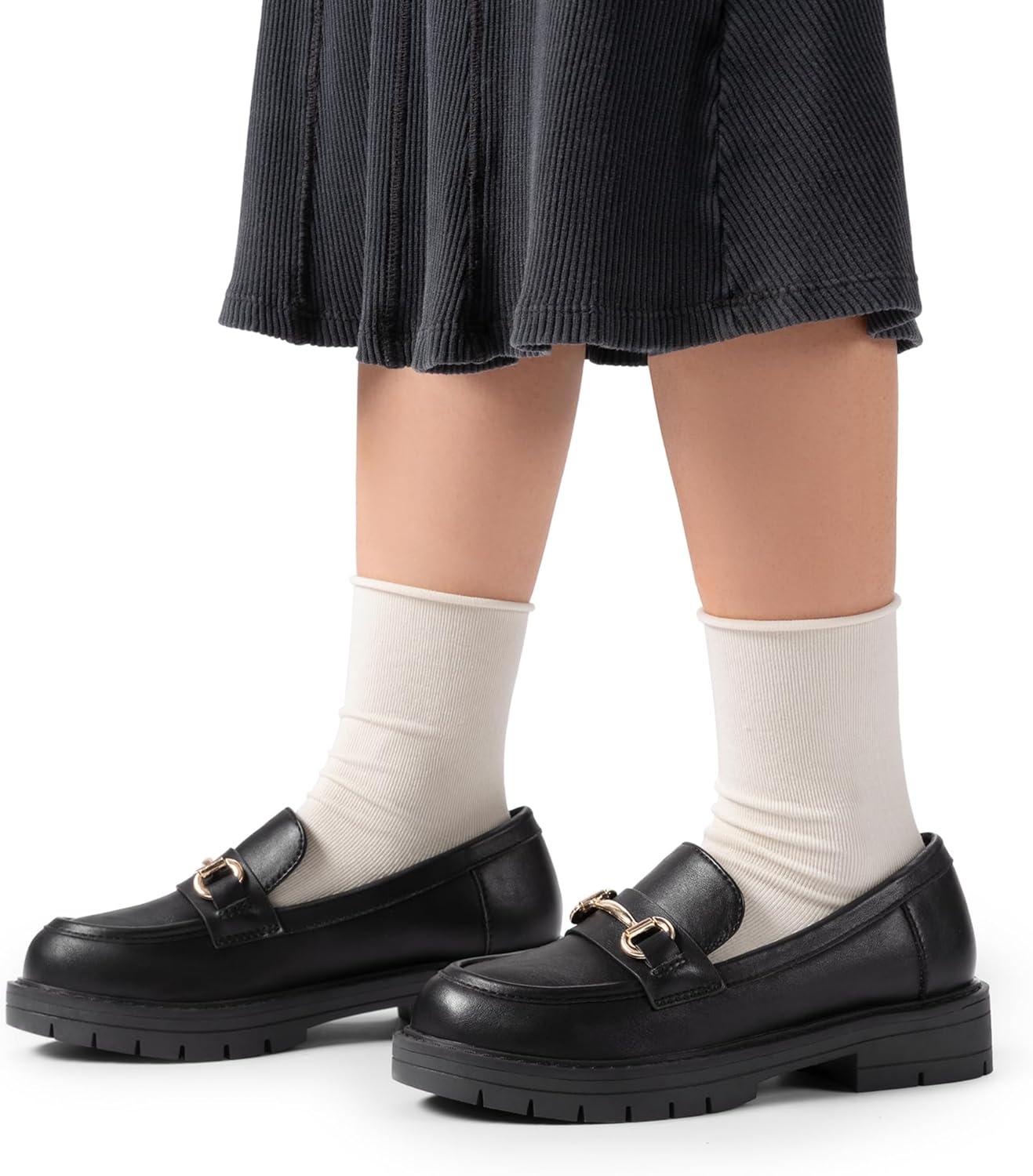 DREAM PAIRS Girls Loafers Chunky Platform Slip On Loafers School Uniform Dress Shoes(Black-pu)