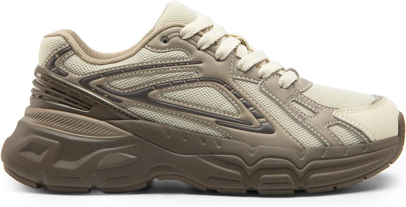 DREAM PAIRS Women’s Platform Chunky Liv Fashion Sneakers Walking Lace-Up Comfortable Y2K-Style Sneakers Workout Sport Work Casual Tennis Shoes(Brown/Beige)