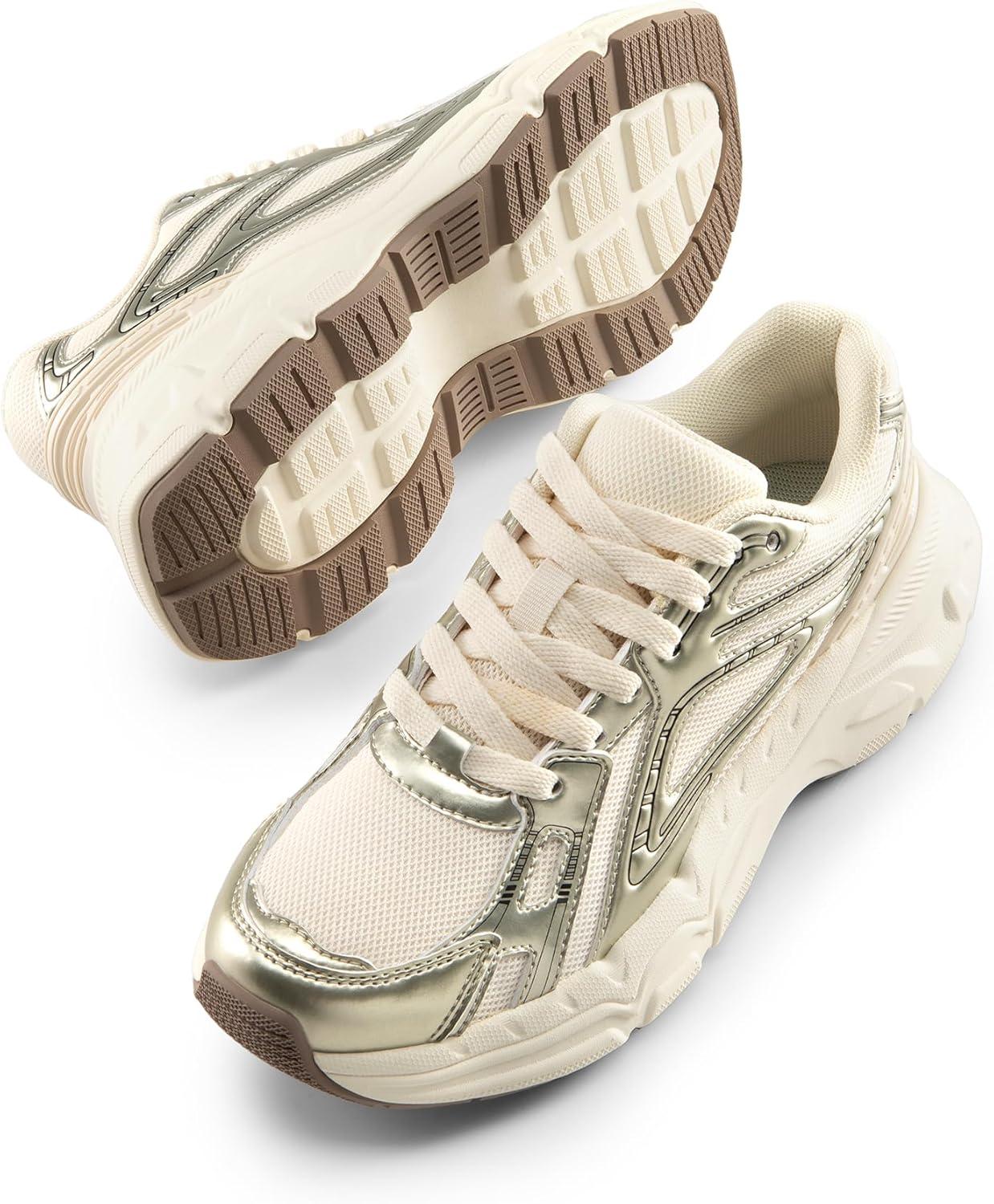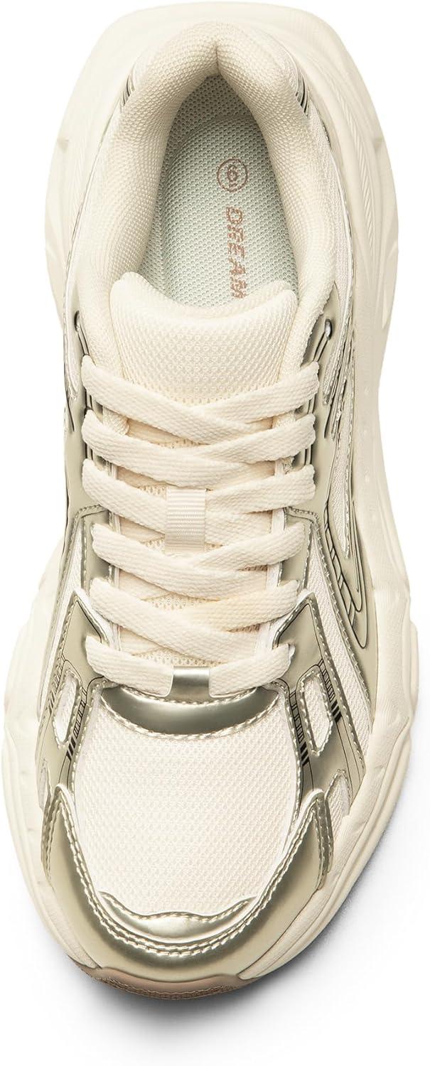 DREAM PAIRS Women’s Platform Chunky Liv Fashion Sneakers Walking Lace-Up Comfortable Y2K-Style Sneakers Workout Sport Work Casual Tennis Shoes(Champagne)