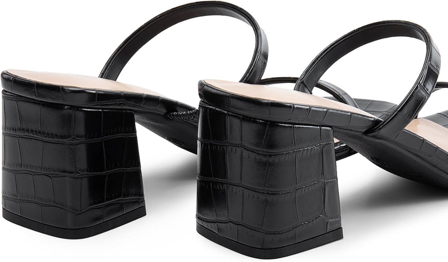 DREAM PAIRS Sandal Heels for Women Low Square Open Toe Block Chunky Heels Slip On Slides Mules for Party Homecoming Daily(Black-stone Pu)