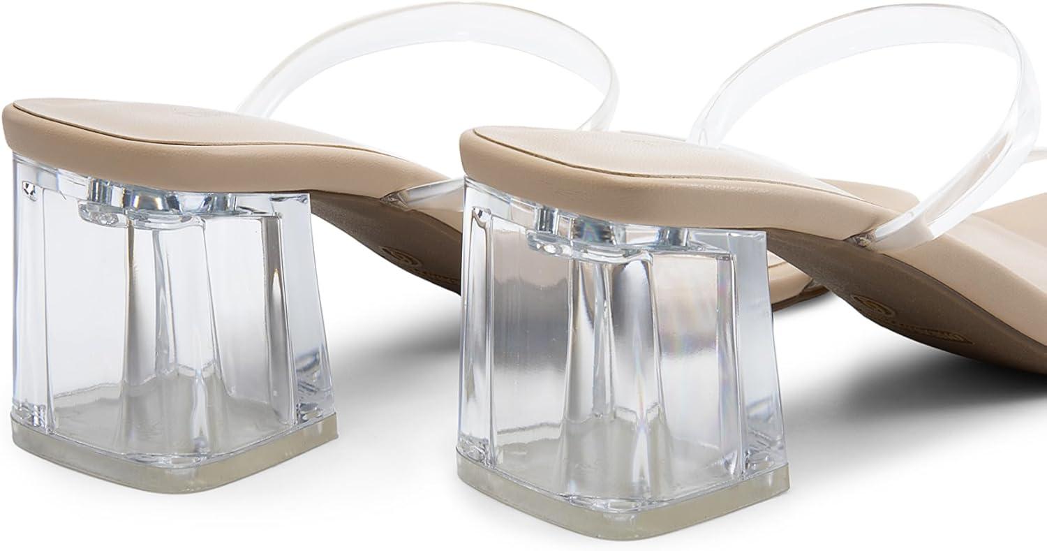 DREAM PAIRS Sandal Heels for Women Low Square Open Toe Block Chunky Heels Slip On Slides Mules for Party Homecoming Daily(Clear)