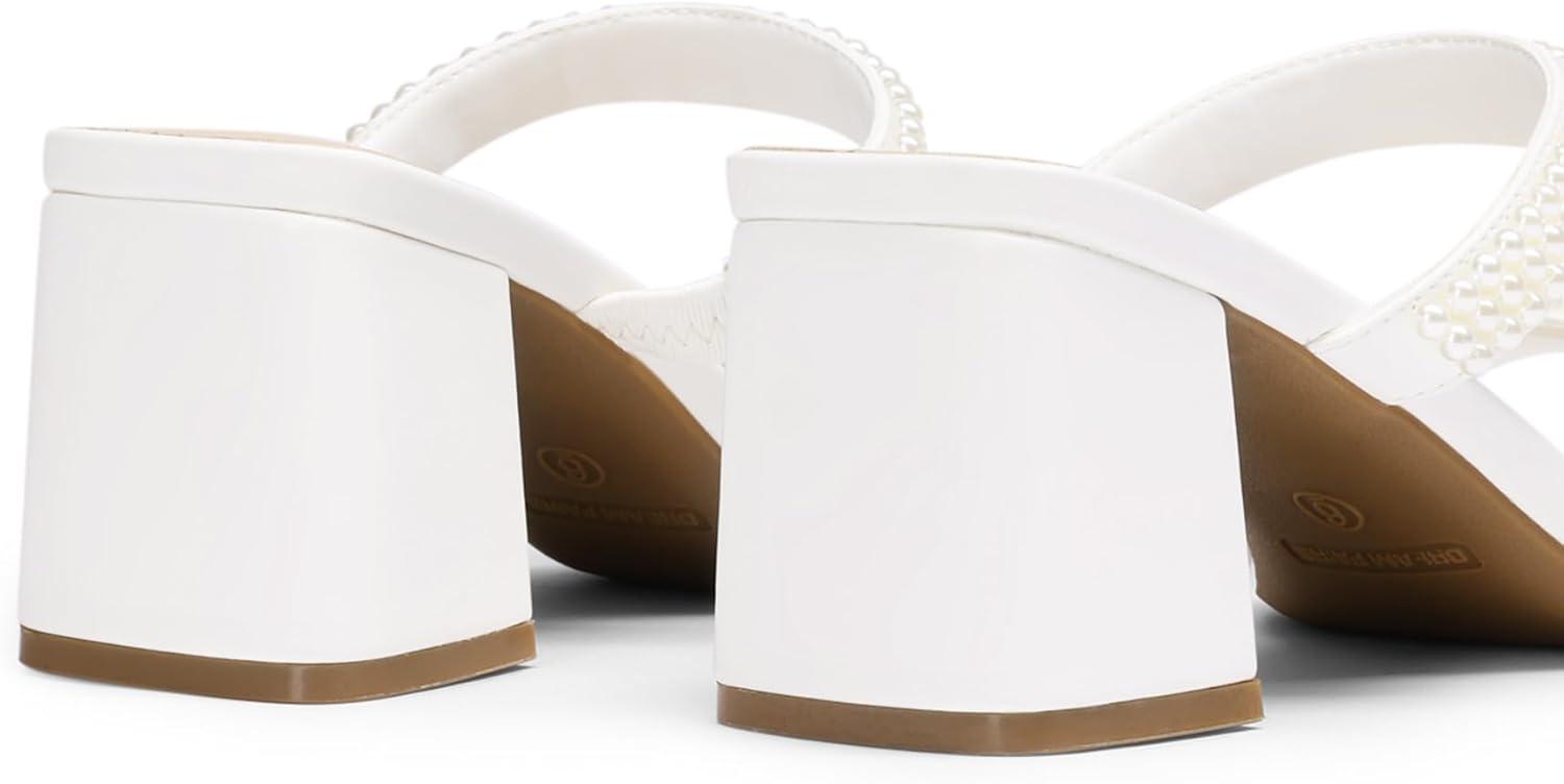 DREAM PAIRS Sandal Heels for Women Low Square Open Toe Block Chunky Heels Slip On Slides Mules for Party Homecoming Daily(Pure White)