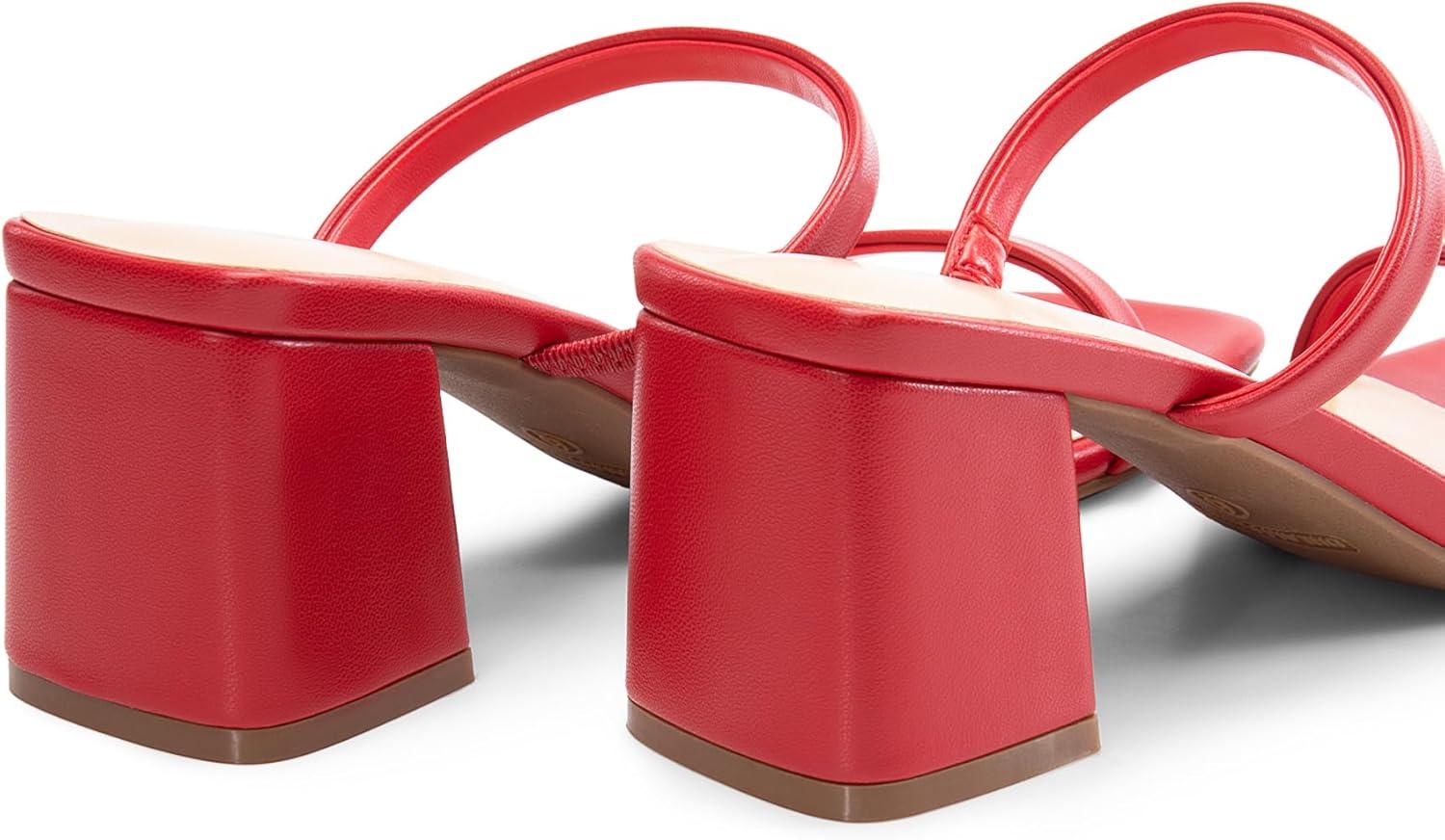 DREAM PAIRS Sandal Heels for Women Low Square Open Toe Block Chunky Heels Slip On Slides Mules for Party Homecoming Daily(Red)