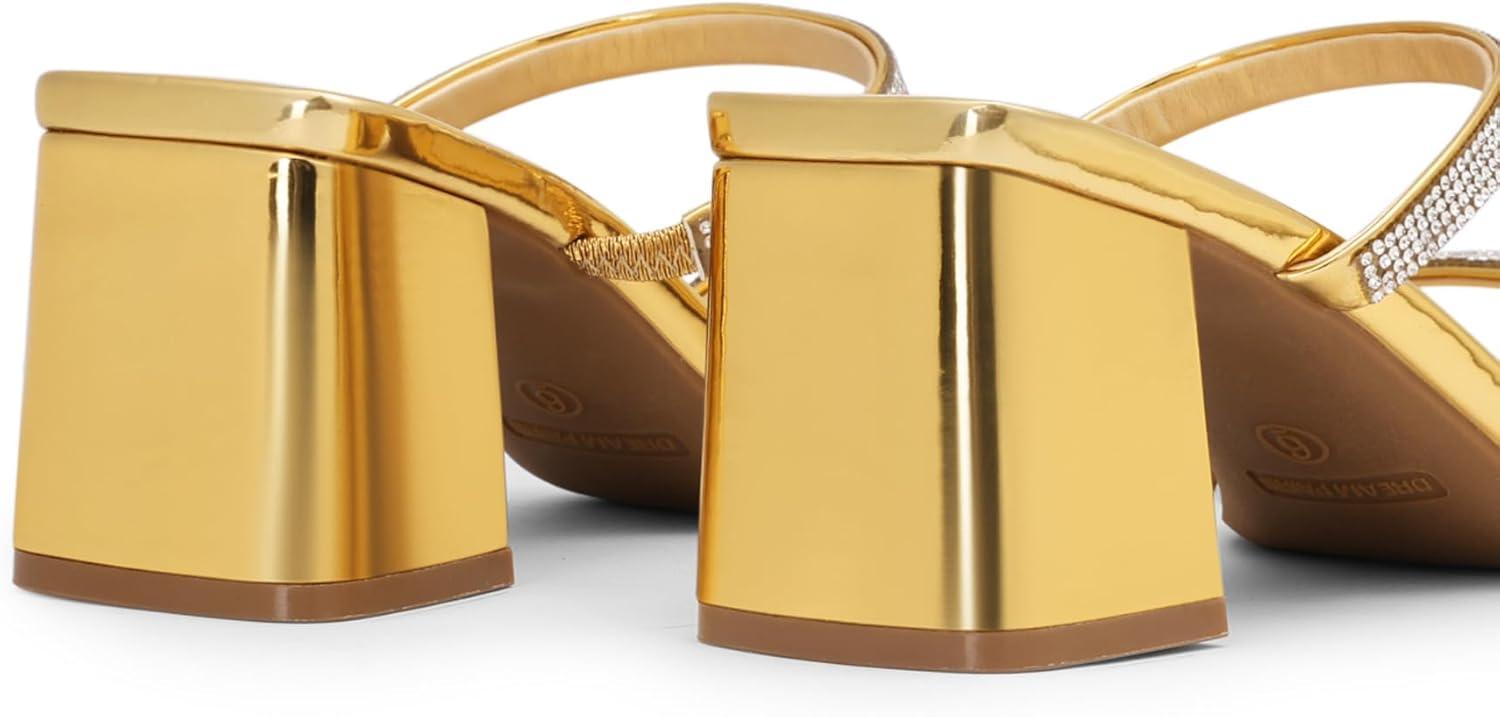 DREAM PAIRS Sandal Heels for Women Low Square Open Toe Block Chunky Heels Slip On Slides Mules for Party Homecoming Daily(Shiny Gold)
