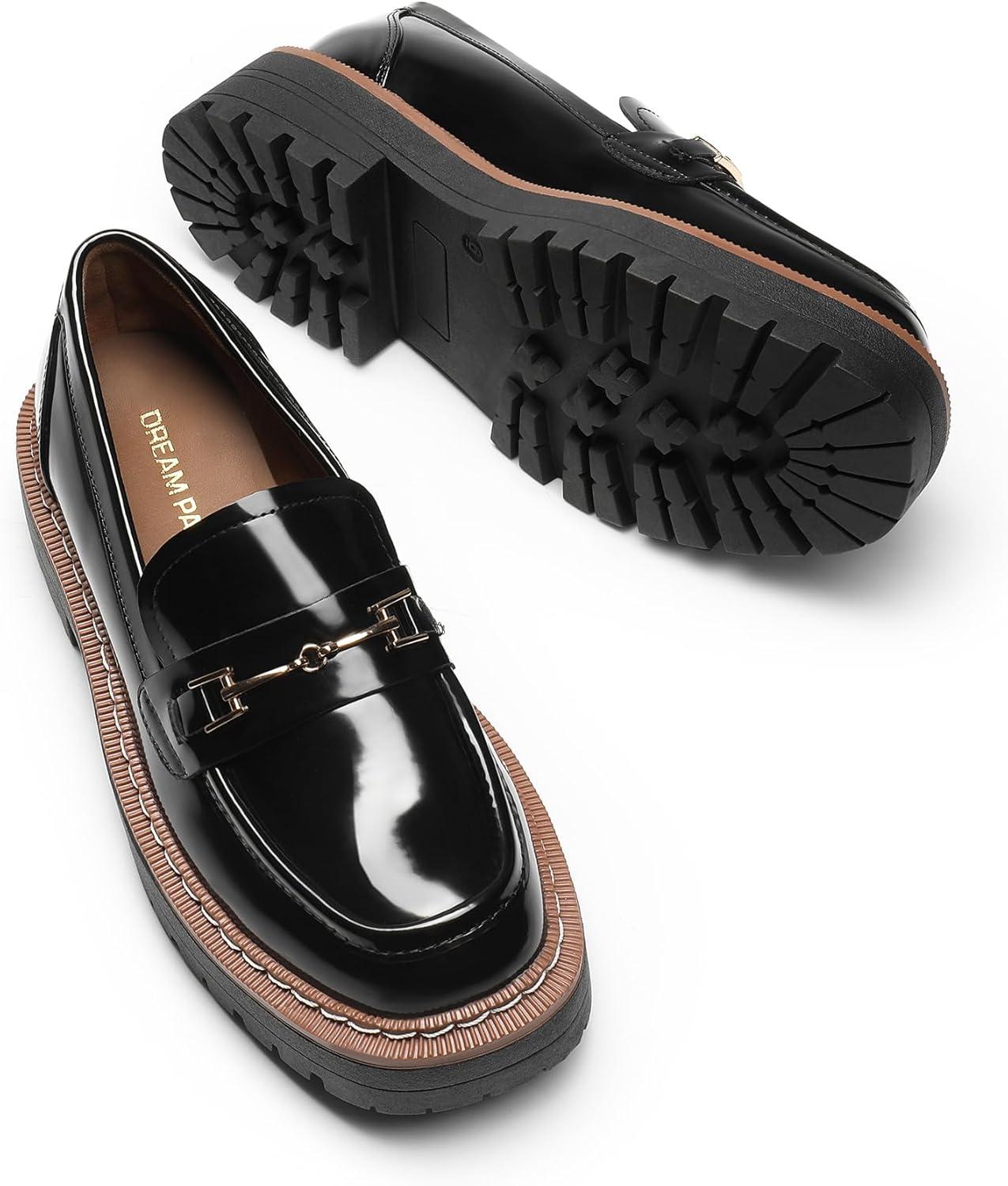 DREAM PAIRS Loafers for Women Platform Chunky Heel Slip On Loafers Business Office Casual Dressy Loafer Shoes(Black-patent)