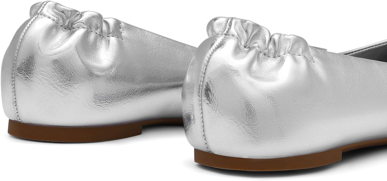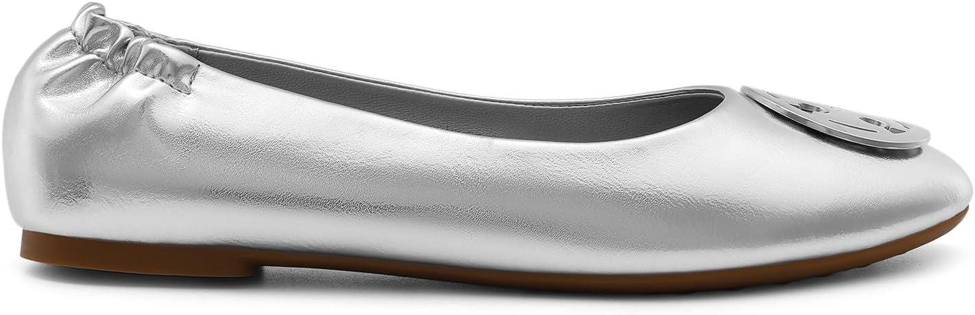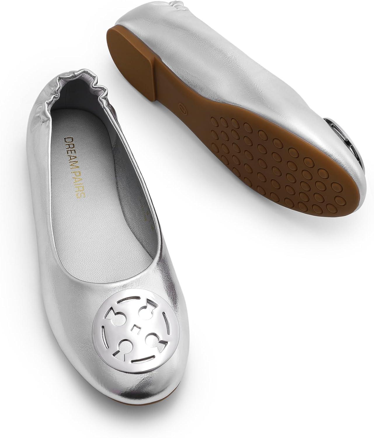 DREAM PAIRS Women’s Ballet Flats Shoes Round Toe Slip On Comfortable Dressy Shoes(Silver)