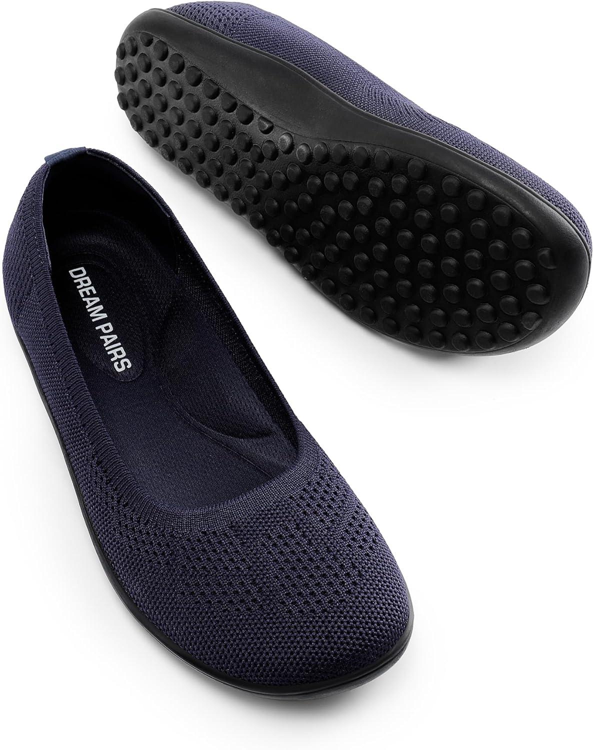 DREAM PAIRS Women’s Ballet Flats, Wide Toe Box Knit Flats for Women with Arch Support, Comfortable Slip On Dressy Travel Work Business Office Shoes for Women(Navy)