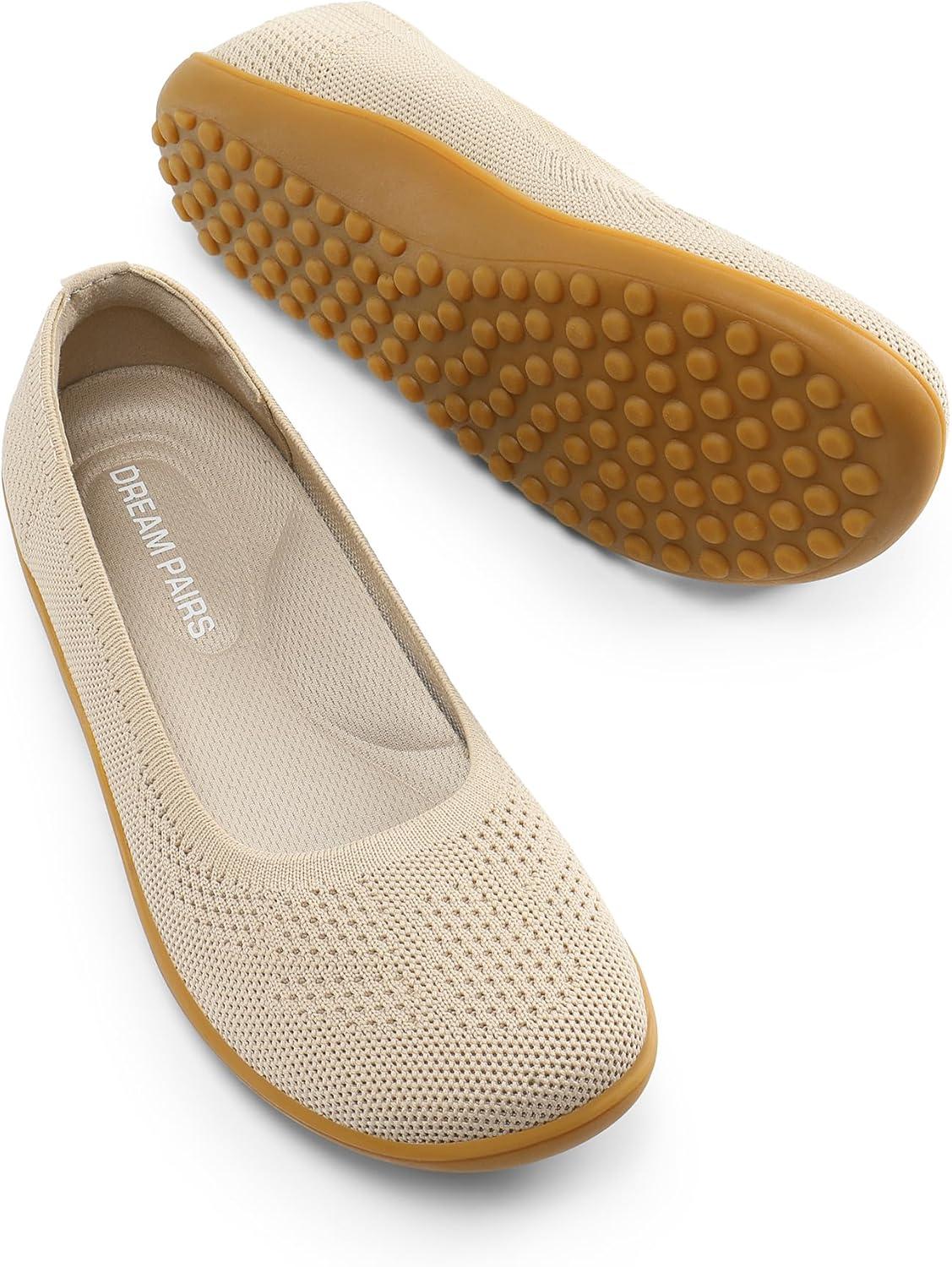 DREAM PAIRS Women’s Ballet Flats, Wide Toe Box Knit Flats for Women with Arch Support, Comfortable Slip On Dressy Travel Work Business Office Shoes for Women(Nude)