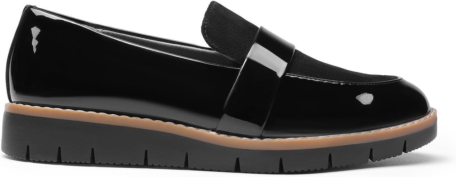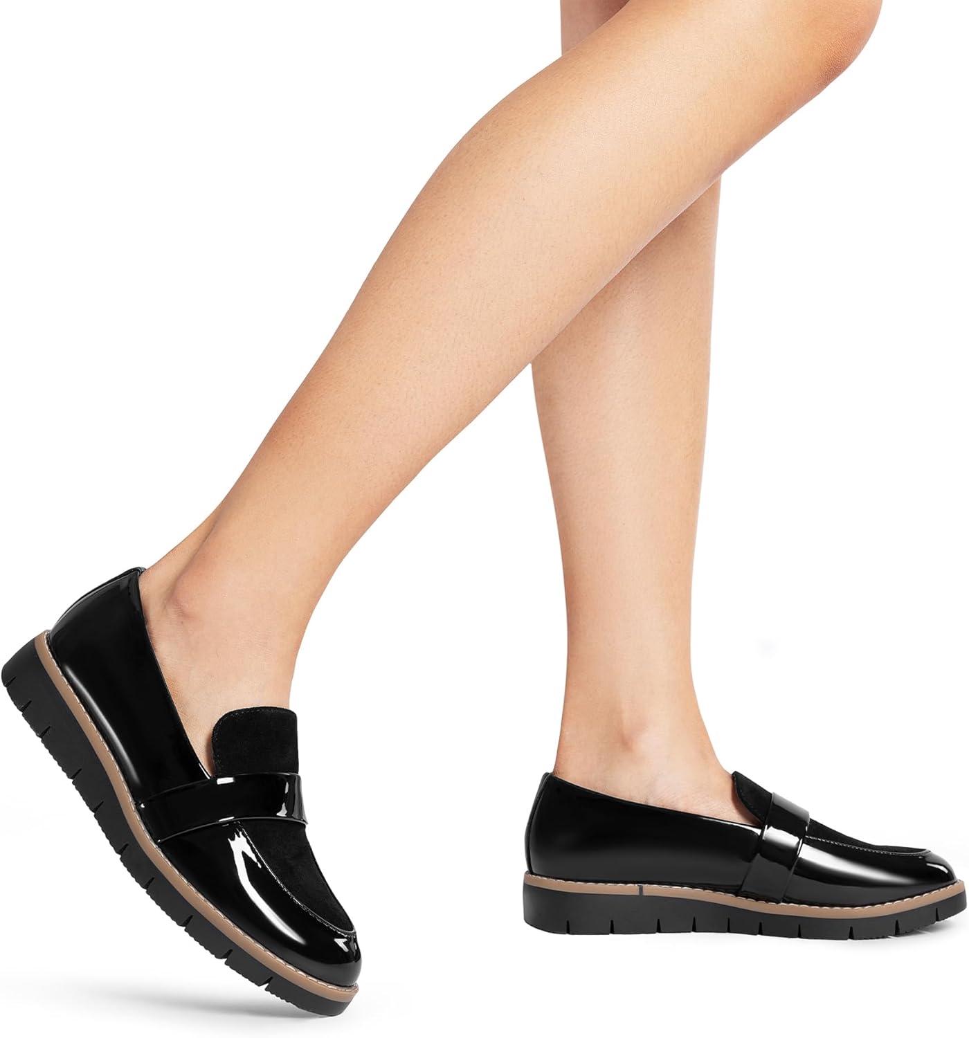 DREAM PAIRS Women’s Loafers, Slip-On Business Casual Work Shoes(Black-pat)