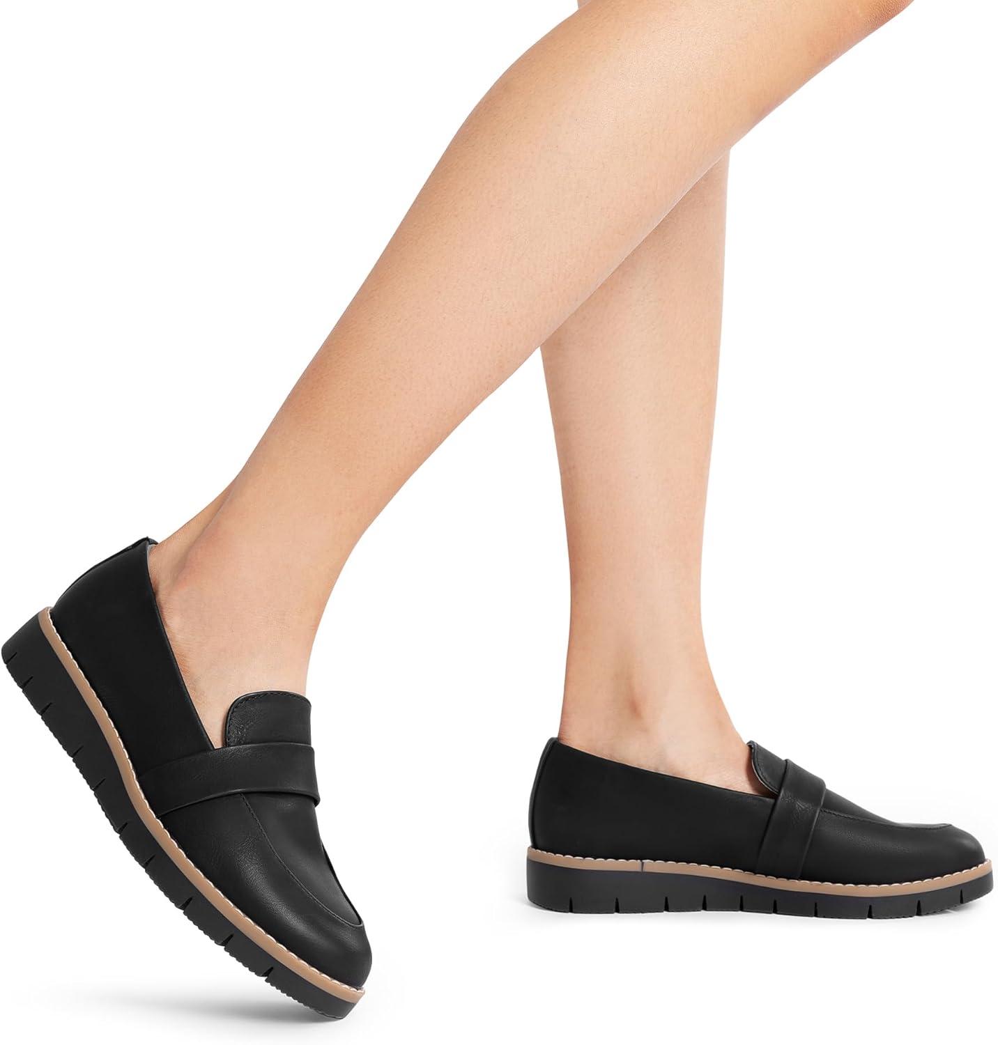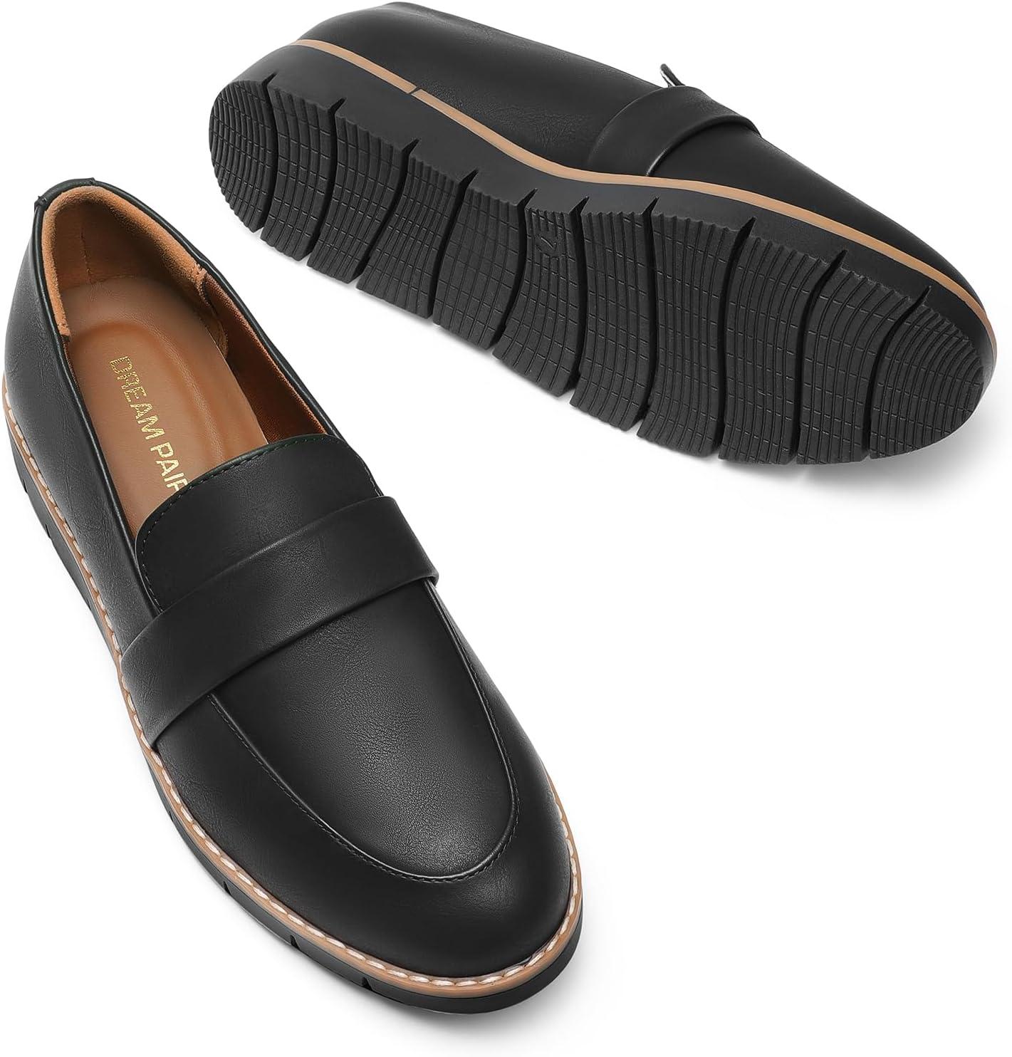 DREAM PAIRS Women’s Loafers, Slip-On Business Casual Work Shoes(Black-pu)