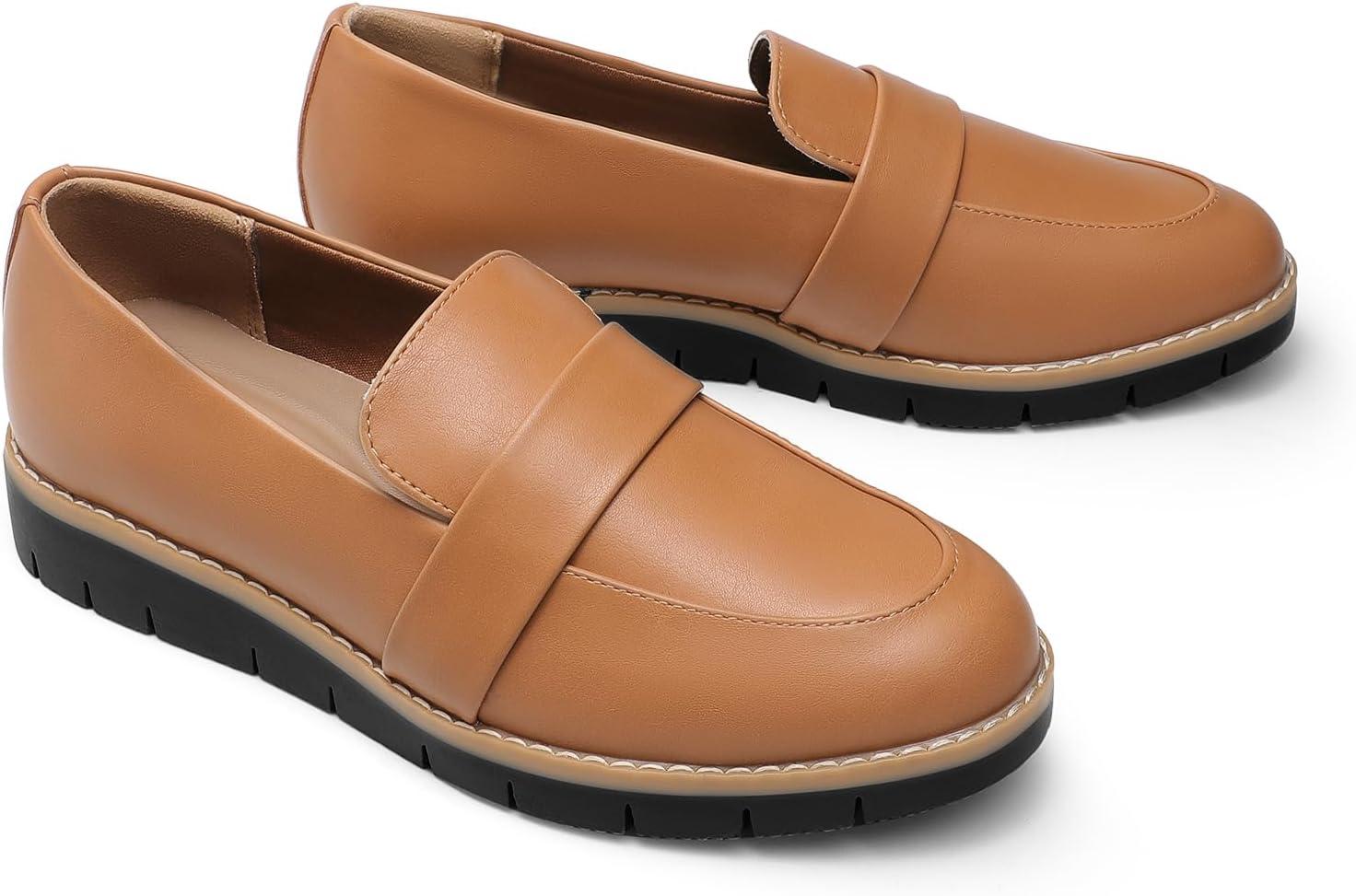 DREAM PAIRS Women’s Loafers, Slip-On Business Casual Work Shoes(Brown-pu)