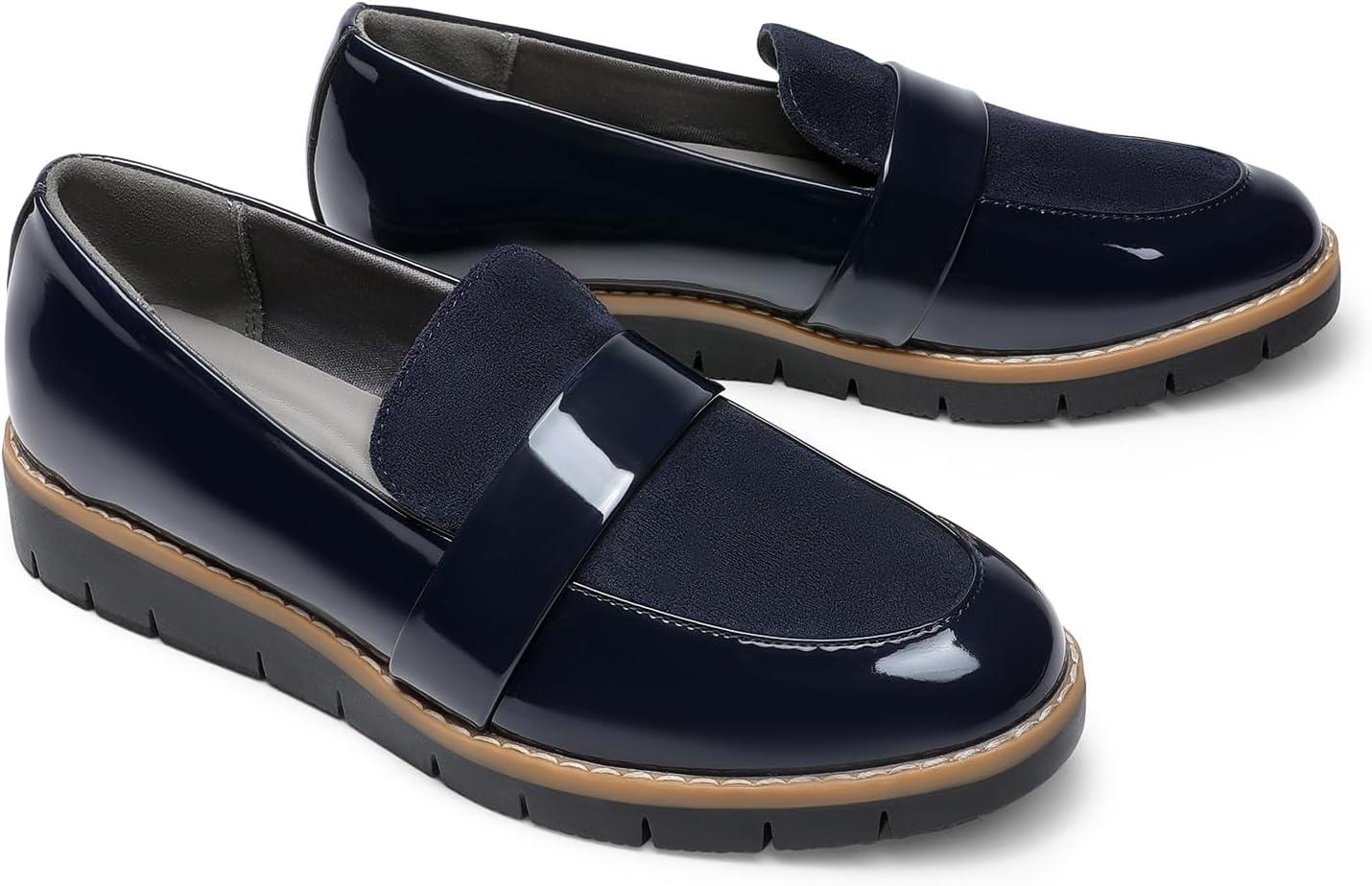DREAM PAIRS Women’s Loafers, Slip-On Business Casual Work Shoes(Navy-pat)