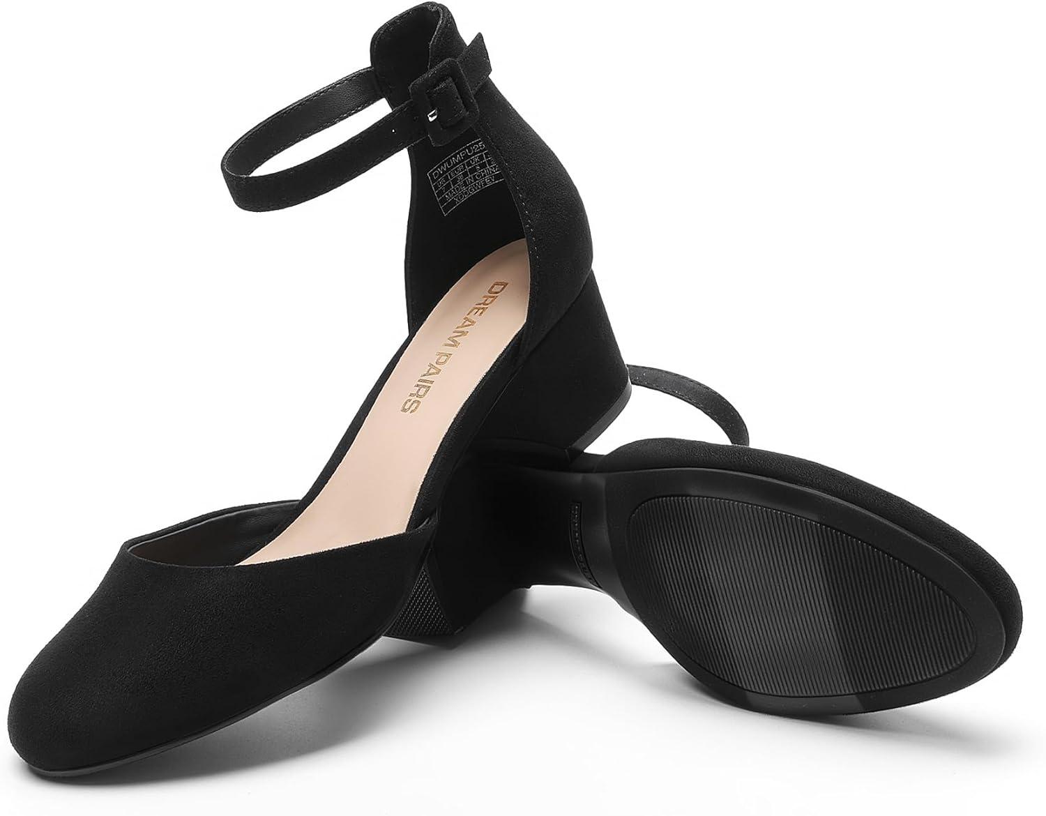 DREAM PAIRS Women’s Closed Round Toe Low Block Heels Ankle Strap Chunky Heel Pumps Dress Wedding Office Party Shoes(Black-suede)
