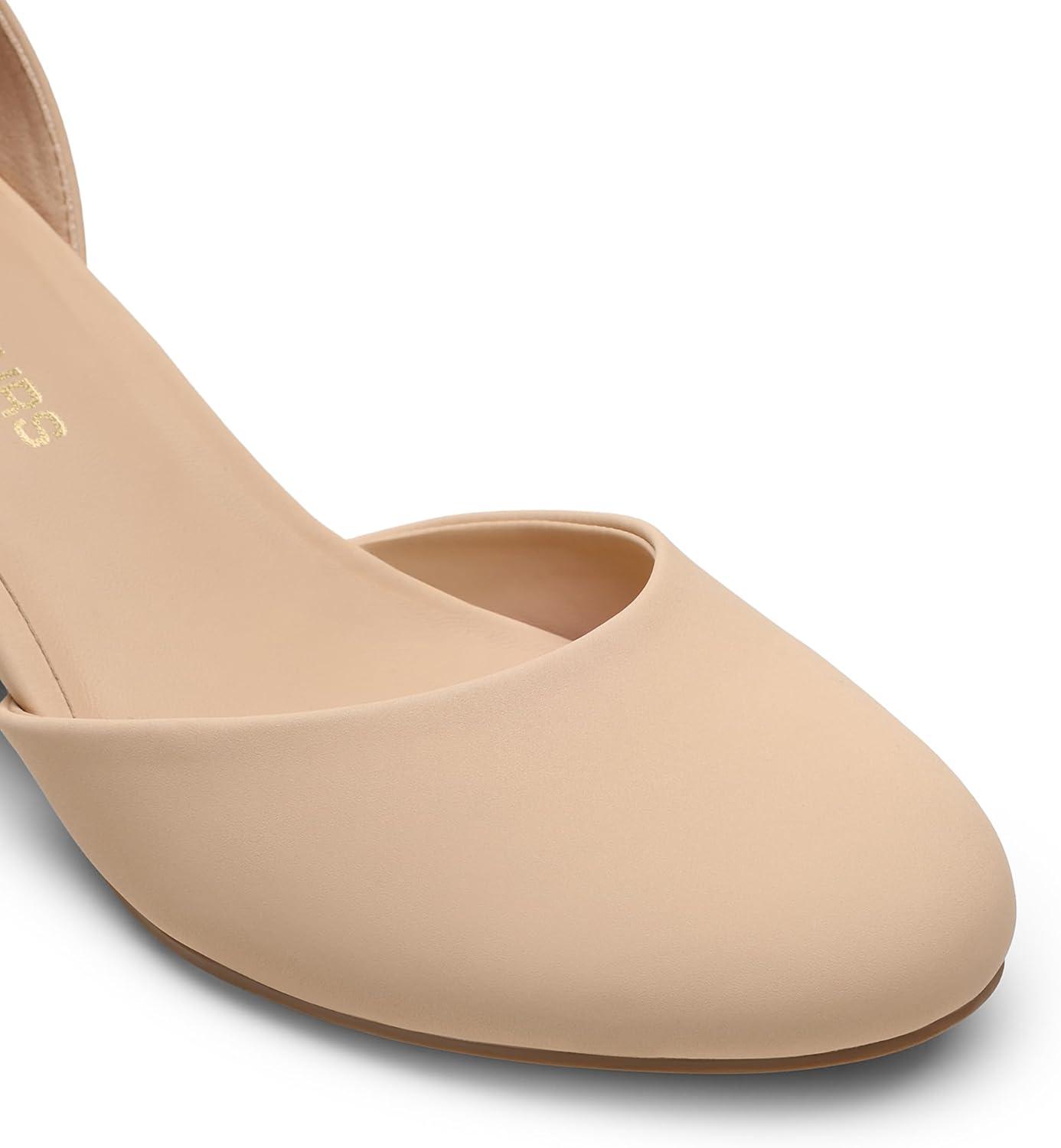 DREAM PAIRS Women’s Closed Round Toe Low Block Heels Ankle Strap Chunky Heel Pumps Dress Wedding Office Party Shoes(Nude)