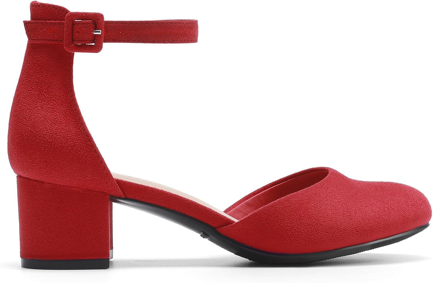 DREAM PAIRS Women’s Closed Round Toe Low Block Heels Ankle Strap Chunky Heel Pumps Dress Wedding Office Party Shoes(Red)