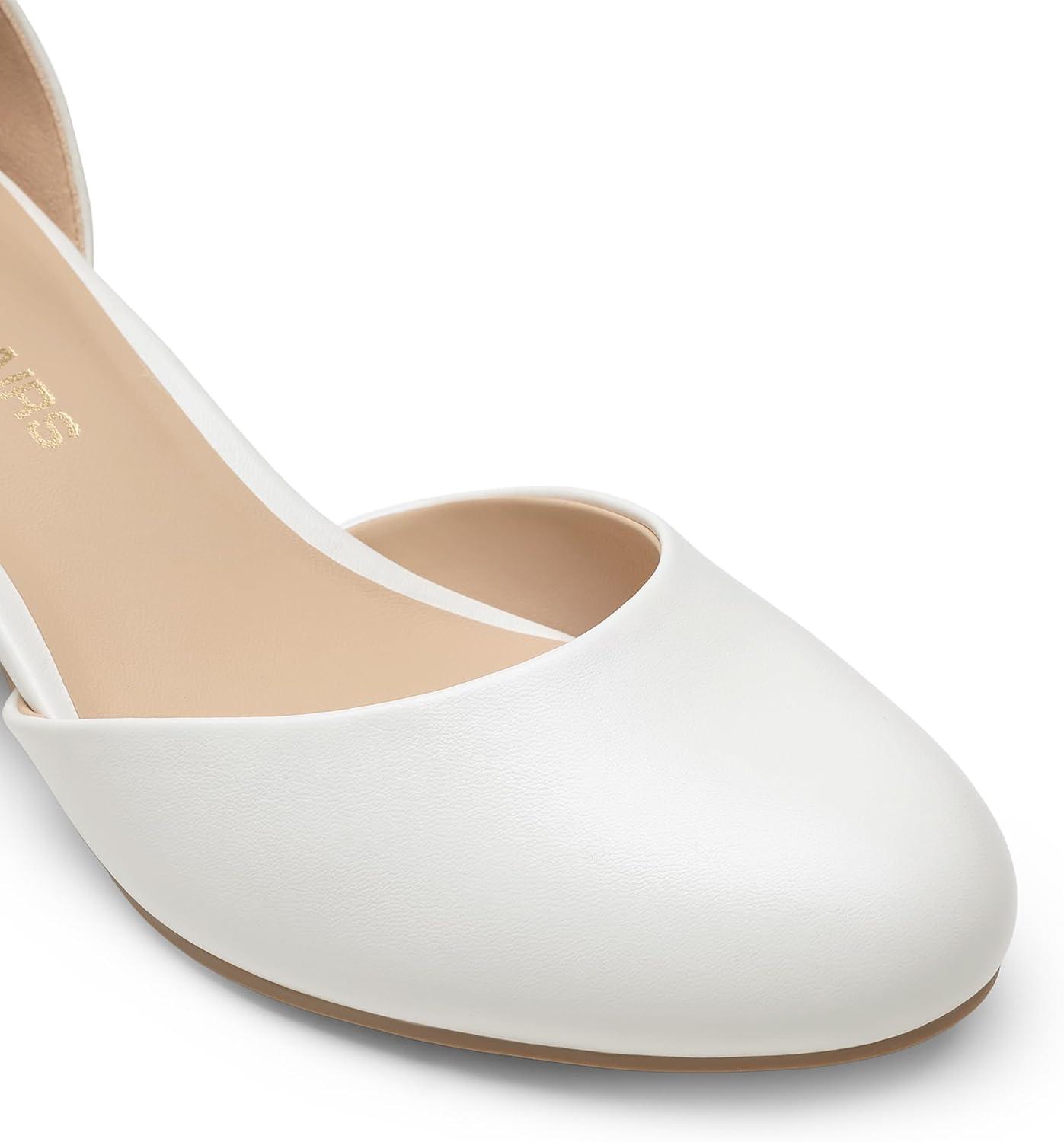 DREAM PAIRS Women’s Closed Round Toe Low Block Heels Ankle Strap Chunky Heel Pumps Dress Wedding Office Party Shoes(White)