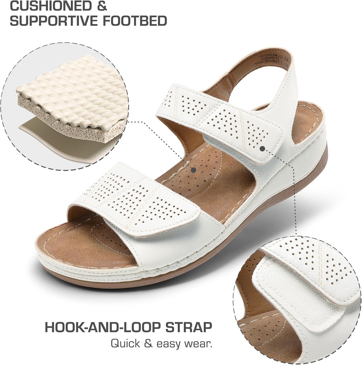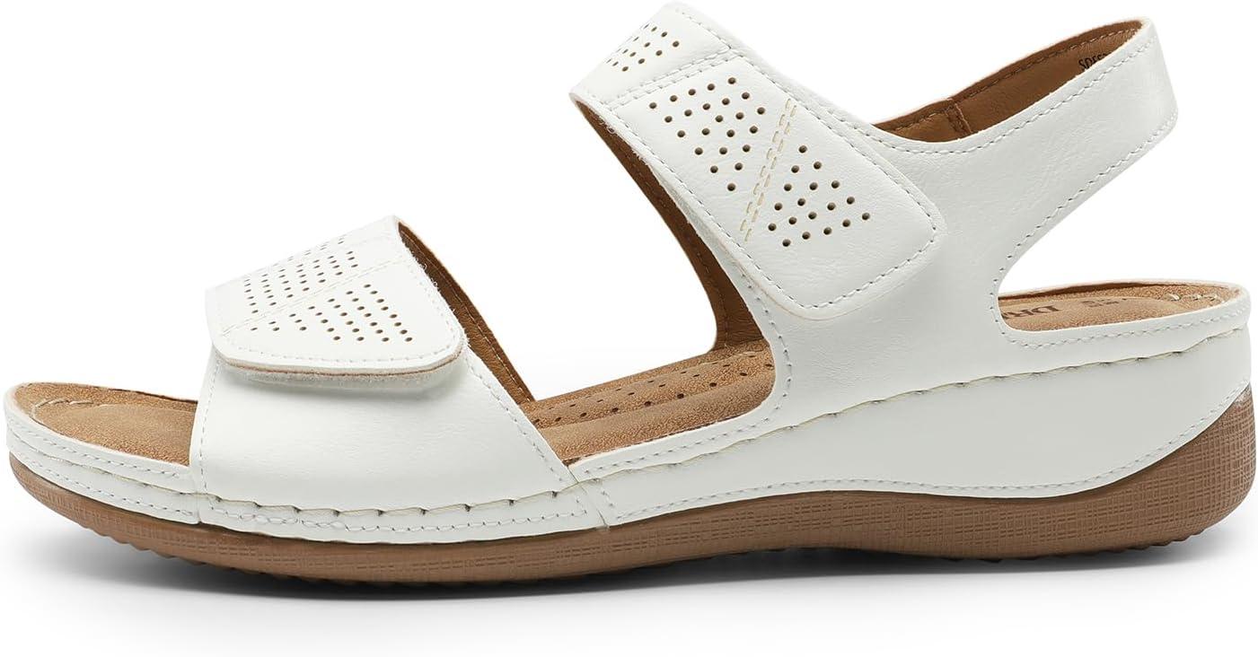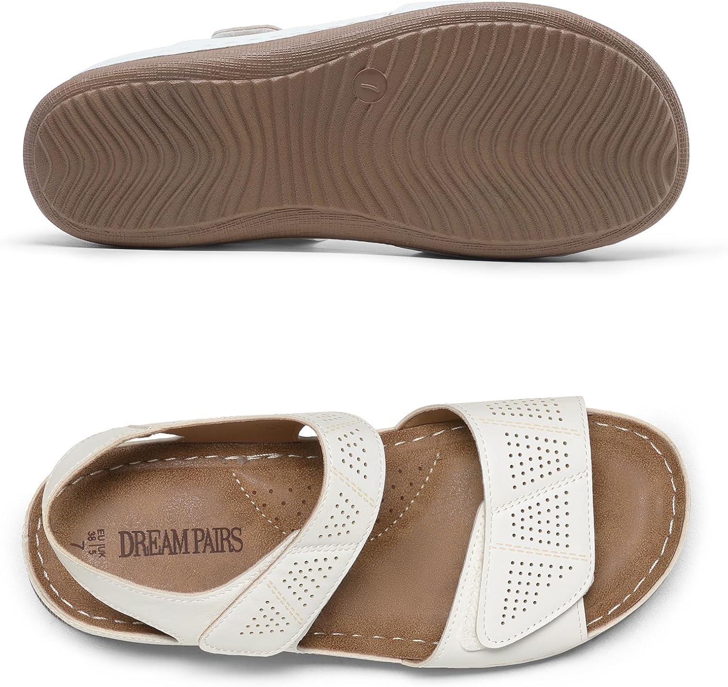 DREAM PAIRS Women’s Elastic Ankle Strap Low Wedges Sandals(White)