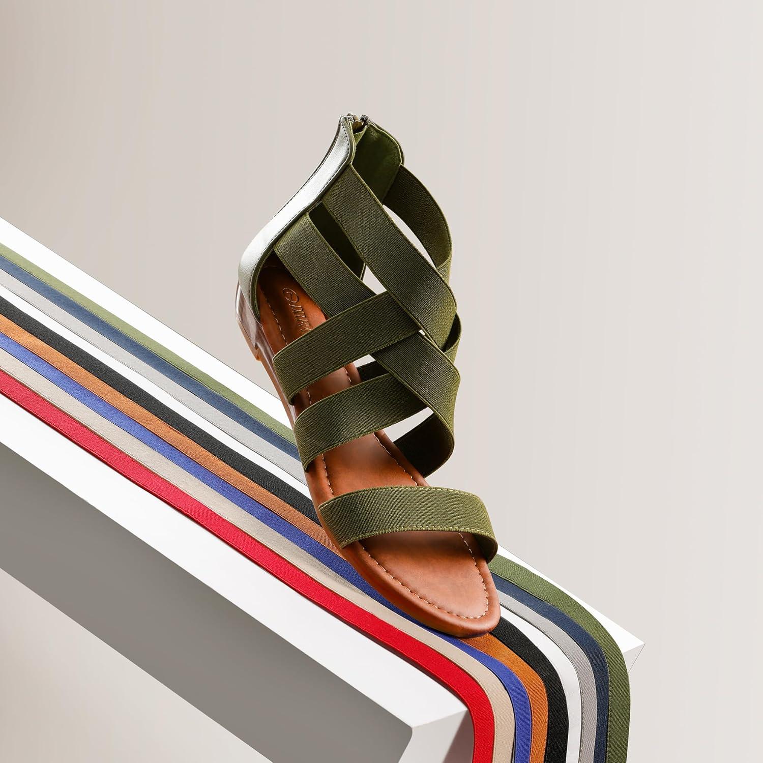 DREAM PAIRS Women’s Elastic Ankle Strap Low Wedges Sandals(Army/Green)