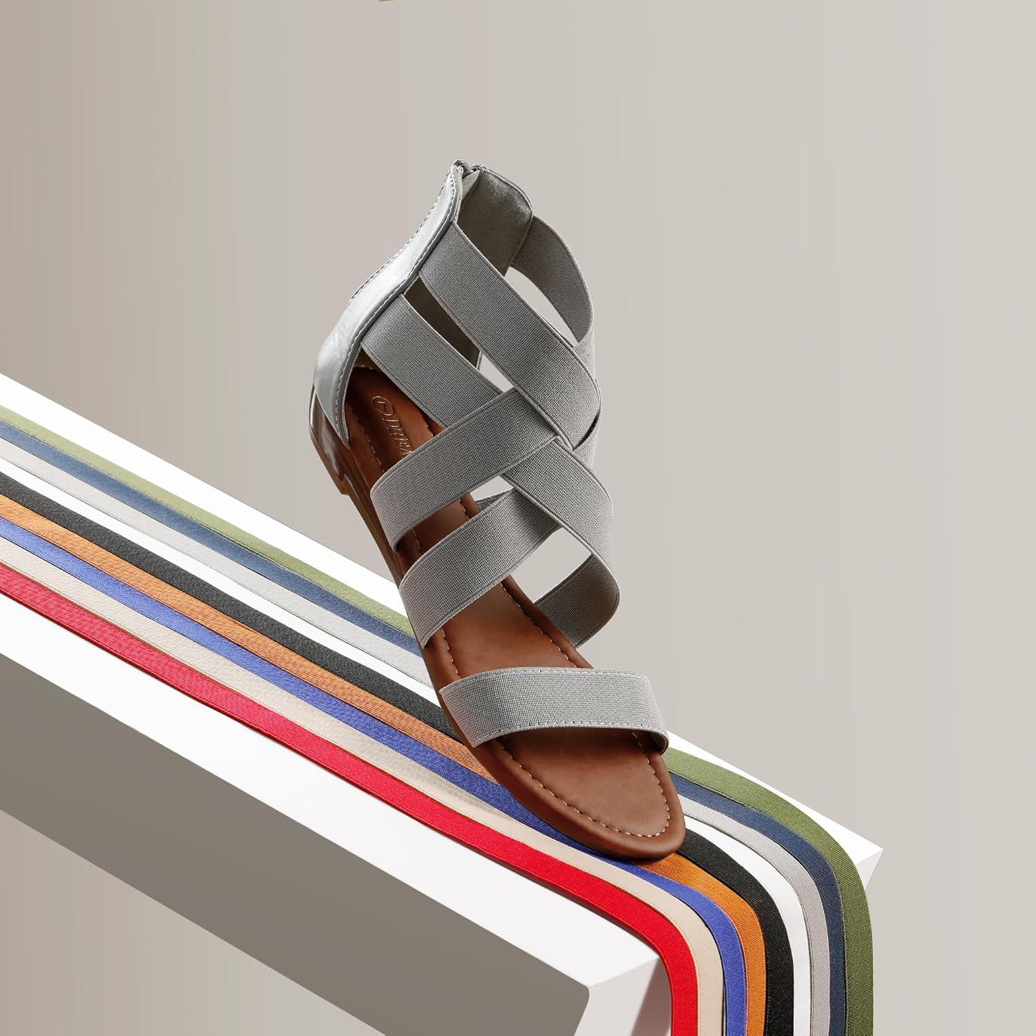 DREAM PAIRS Women’s Elastic Ankle Strap Low Wedges Sandals(Grey)