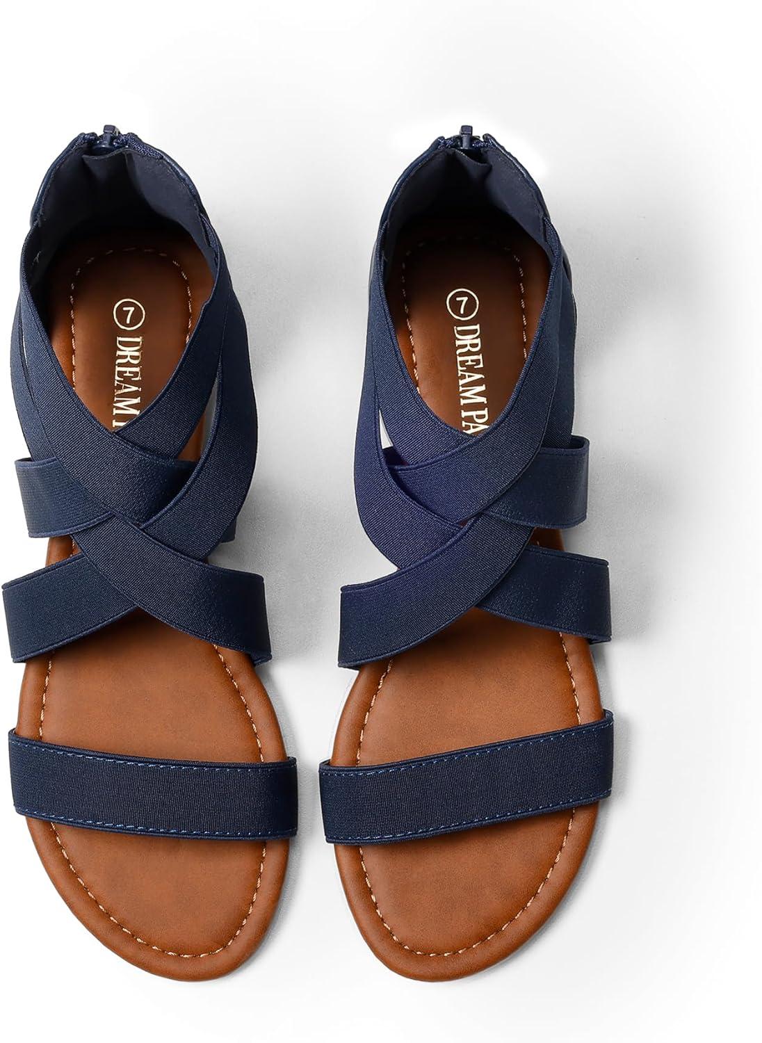 DREAM PAIRS Women’s Comfortable Dressy Flats Sandals Open Toe One Band Casual Walking Sandals for Summer(Navy)