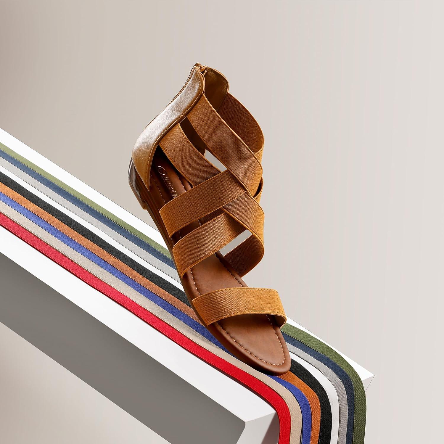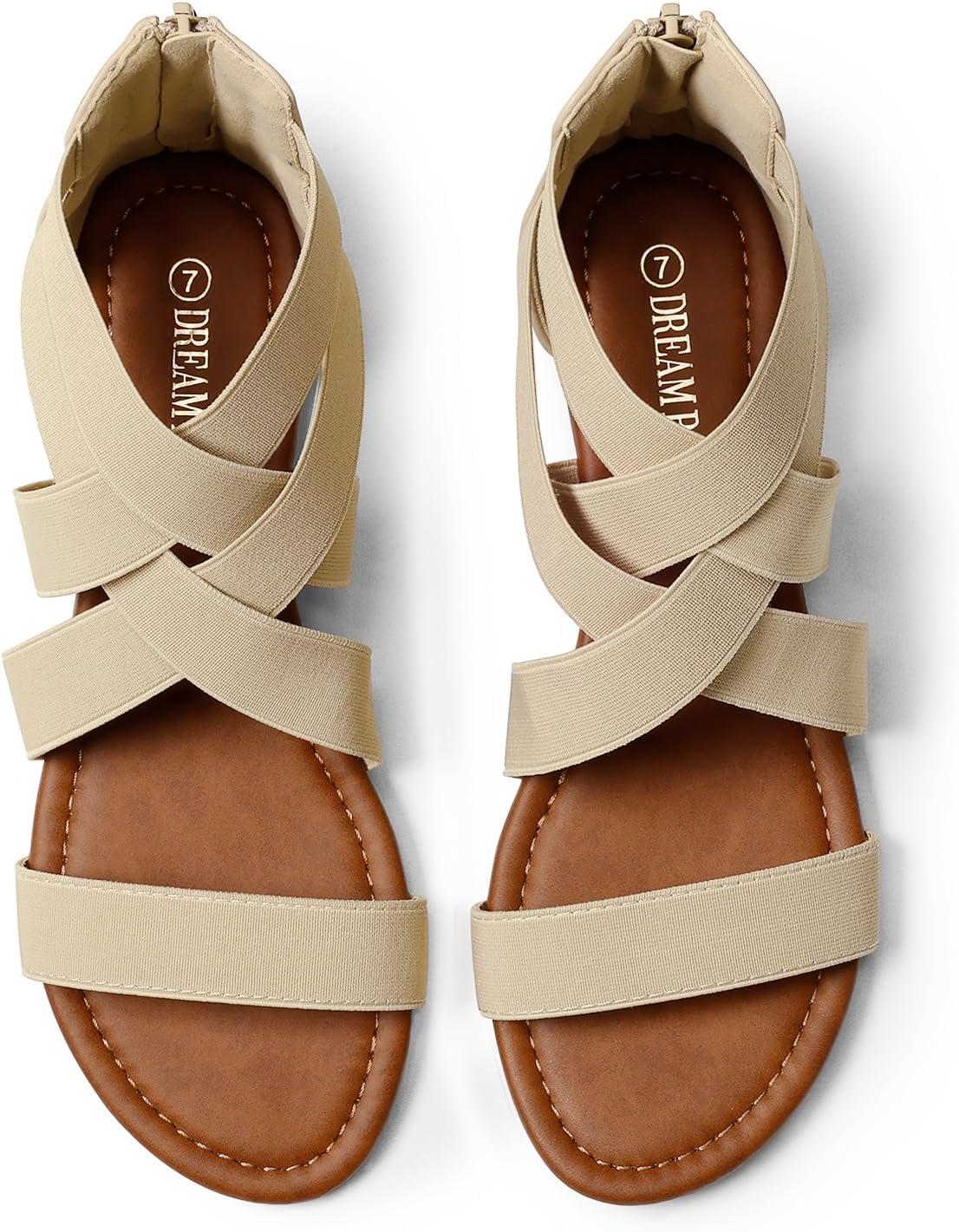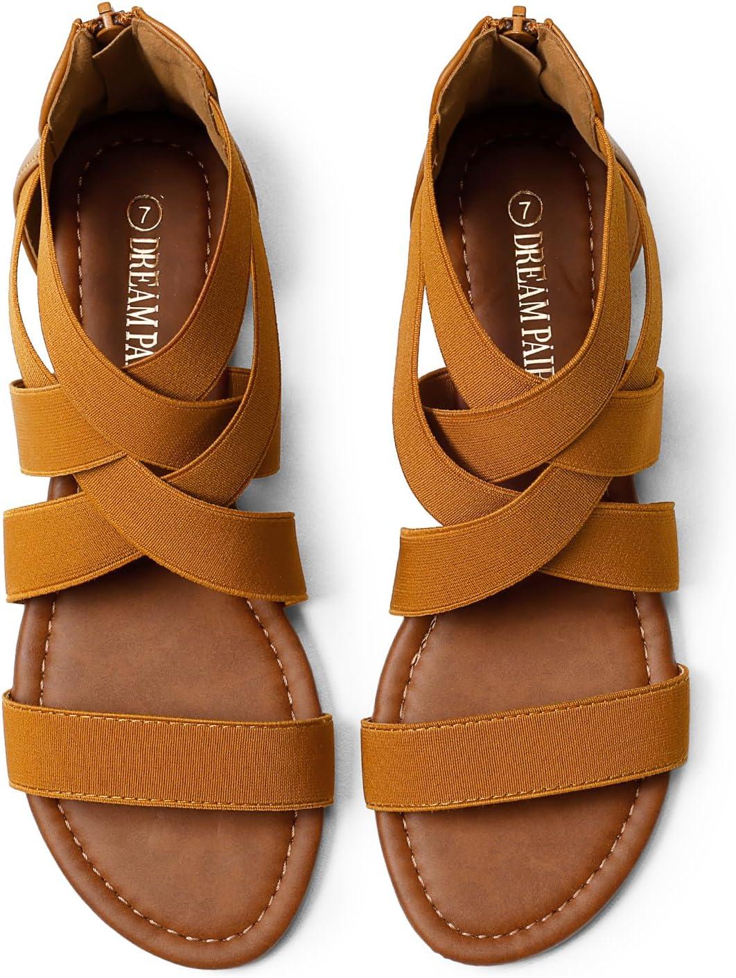 DREAM PAIRS Women’s Dressy Gladiator Summer Cross Strappy Sandals Comfort Flat Casual Beach Fisherman Thong sandals(Brown)