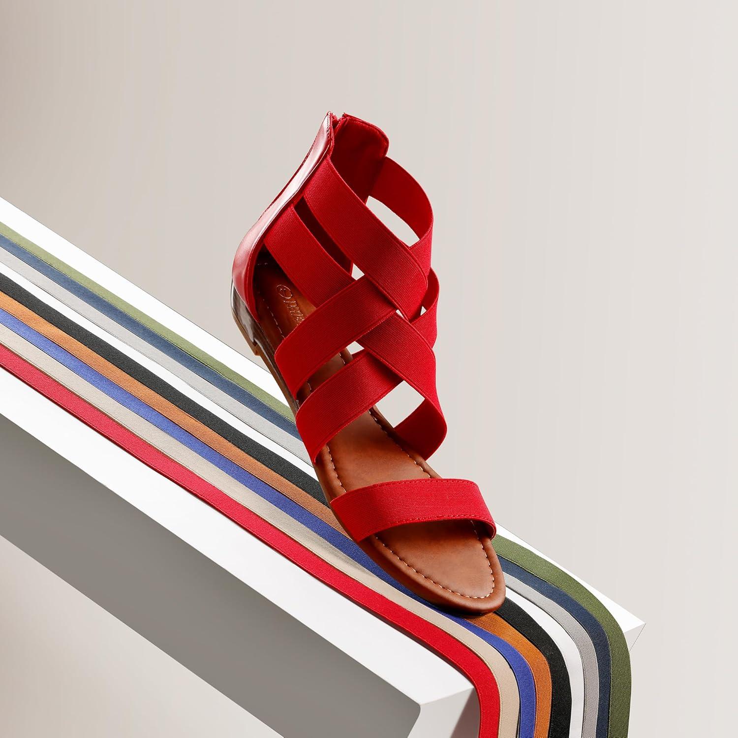 DREAM PAIRS Women’s Comfortable Dressy Flats Sandals Open Toe One Band Casual Walking Sandals for Summer(Red)