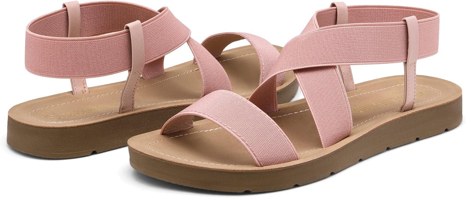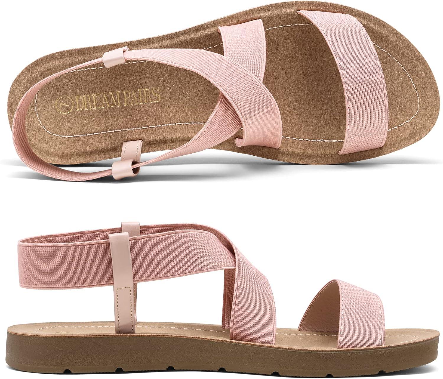 DREAM PAIRS Women’s Open Toe Elastic Ankle Strap Flat Summer Sandals(Blush)
