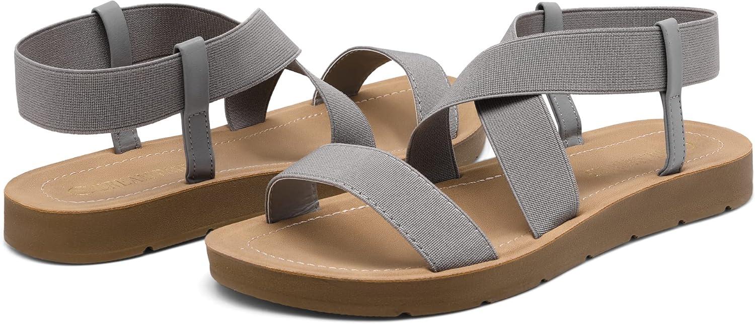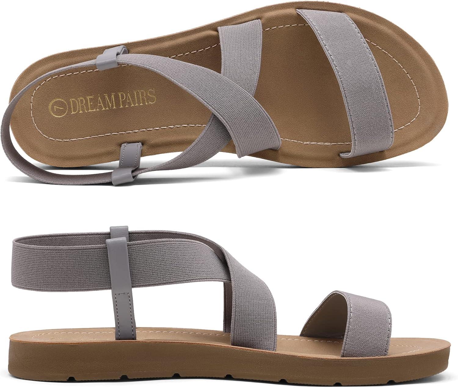 DREAM PAIRS Women’s Open Toe Elastic Ankle Strap Flat Summer Sandals(Grey)