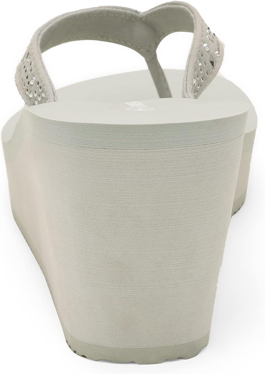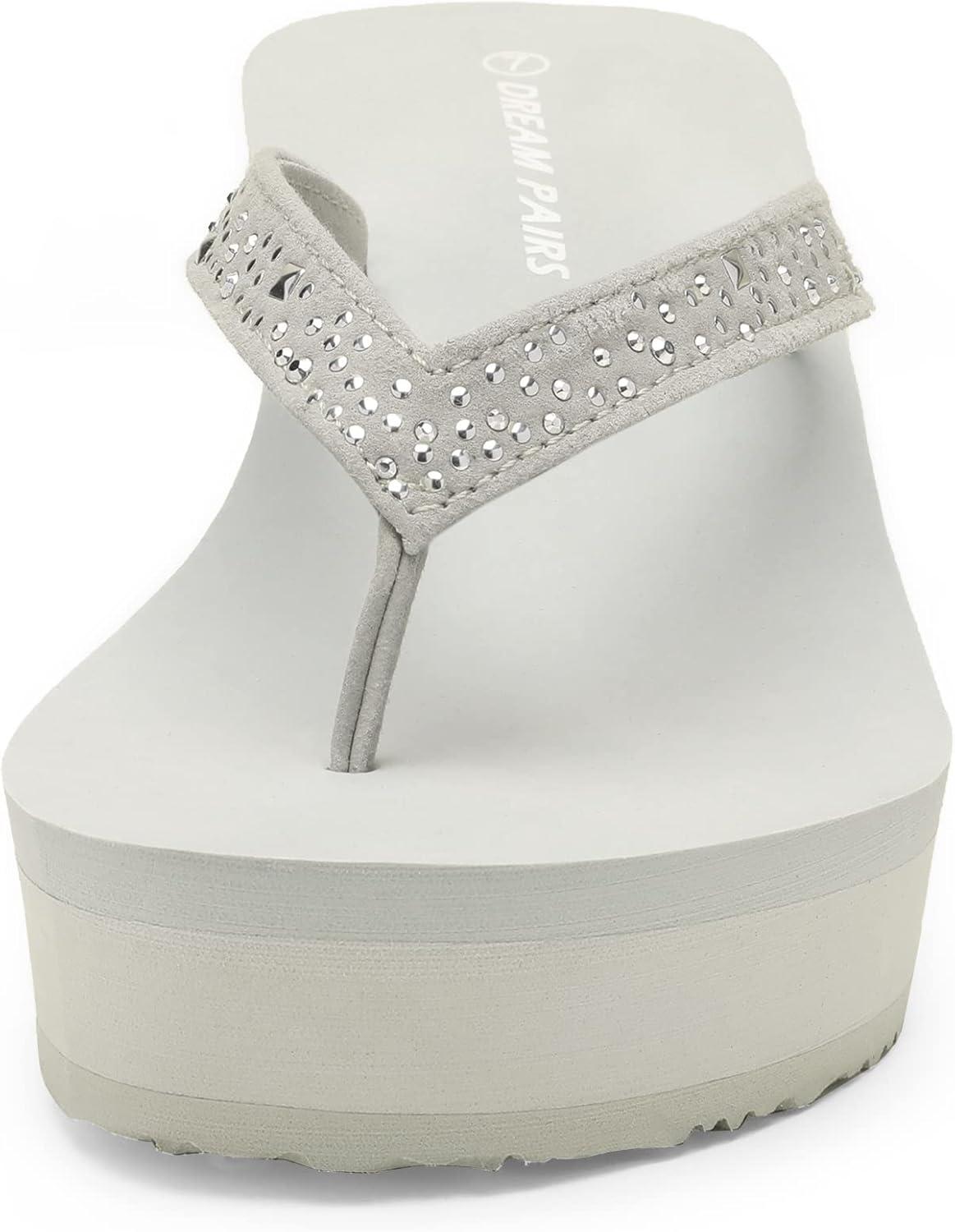 DREAM PAIRS Women’s Platform Flip Flop Rhinestones Arch Support Comfortable Soft Cushion Wedge Flip Flops Summer Thong Sandals(Grey)