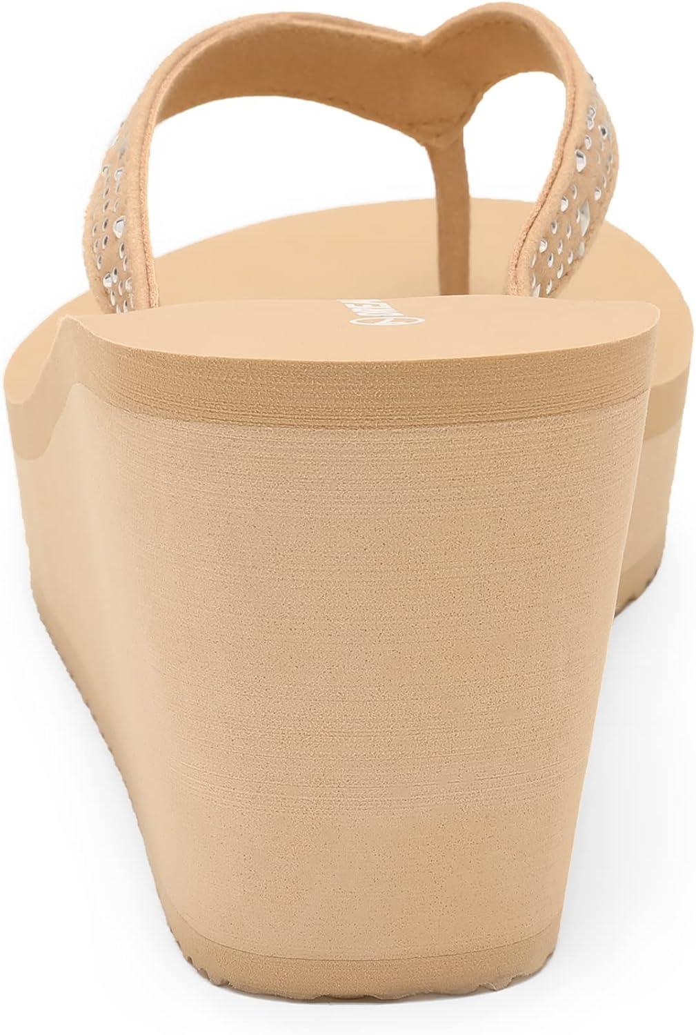 DREAM PAIRS Women’s Platform Flip Flop Rhinestones Arch Support Comfortable Soft Cushion Wedge Flip Flops Summer Thong Sandals(Nude)