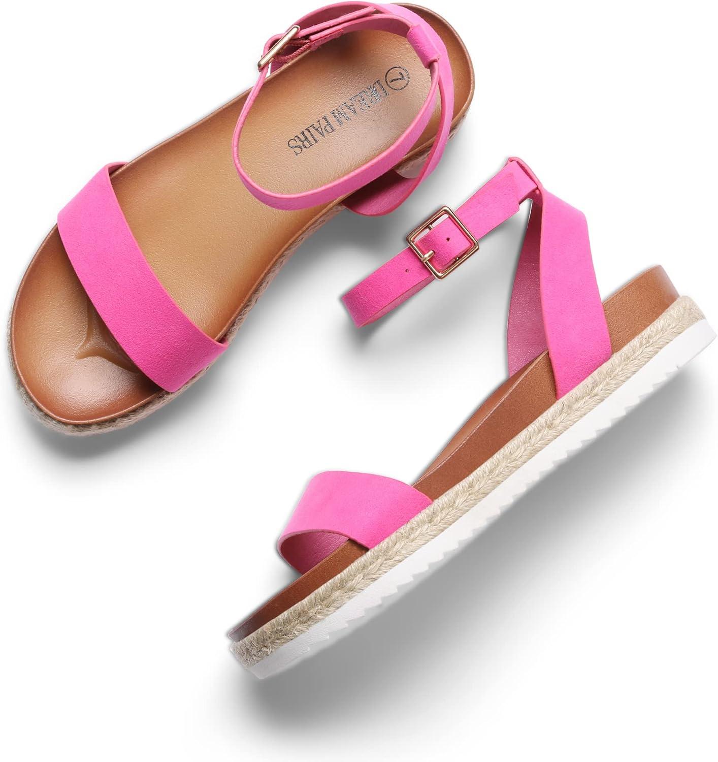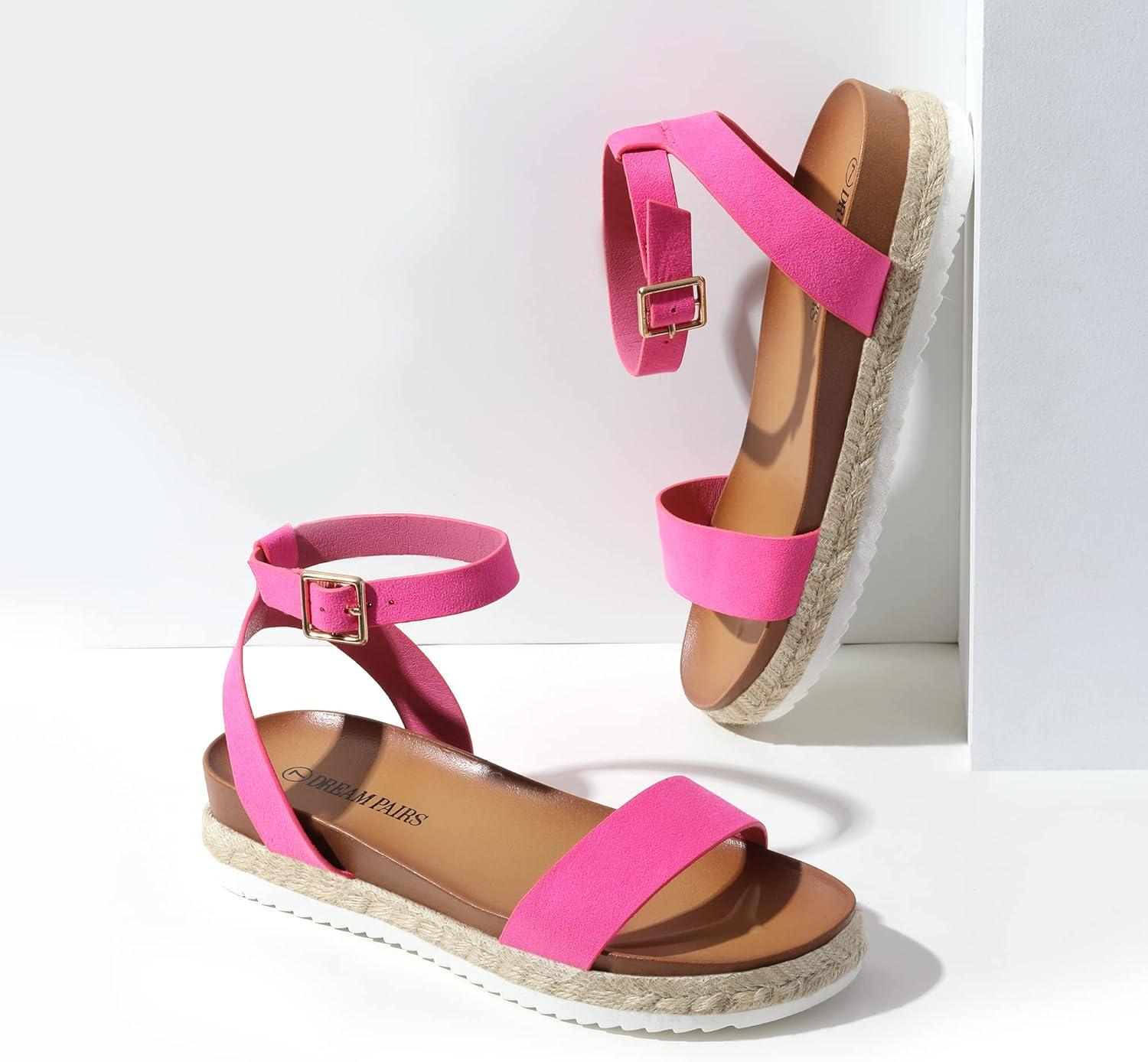 DREAM PAIRS Women’s Open Toe Platform Espadrille Wedge Sandals Comfortable One Band Dressy Casual Sandals for Women(Fuchsia/Suede)