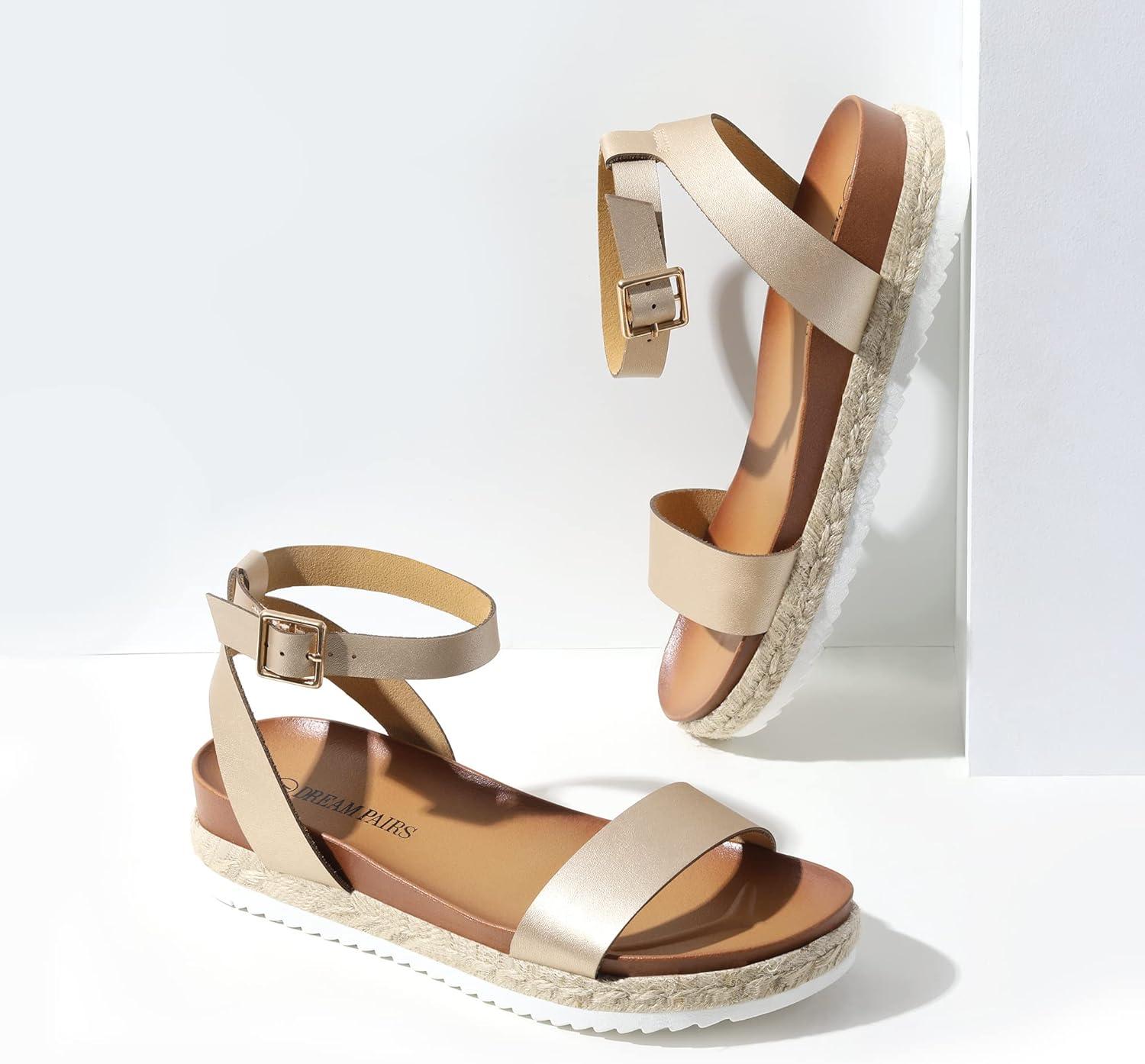 DREAM PAIRS Women’s Open Toe Platform Espadrille Wedge Sandals Comfortable One Band Dressy Casual Sandals for Women(Gold/Pu)