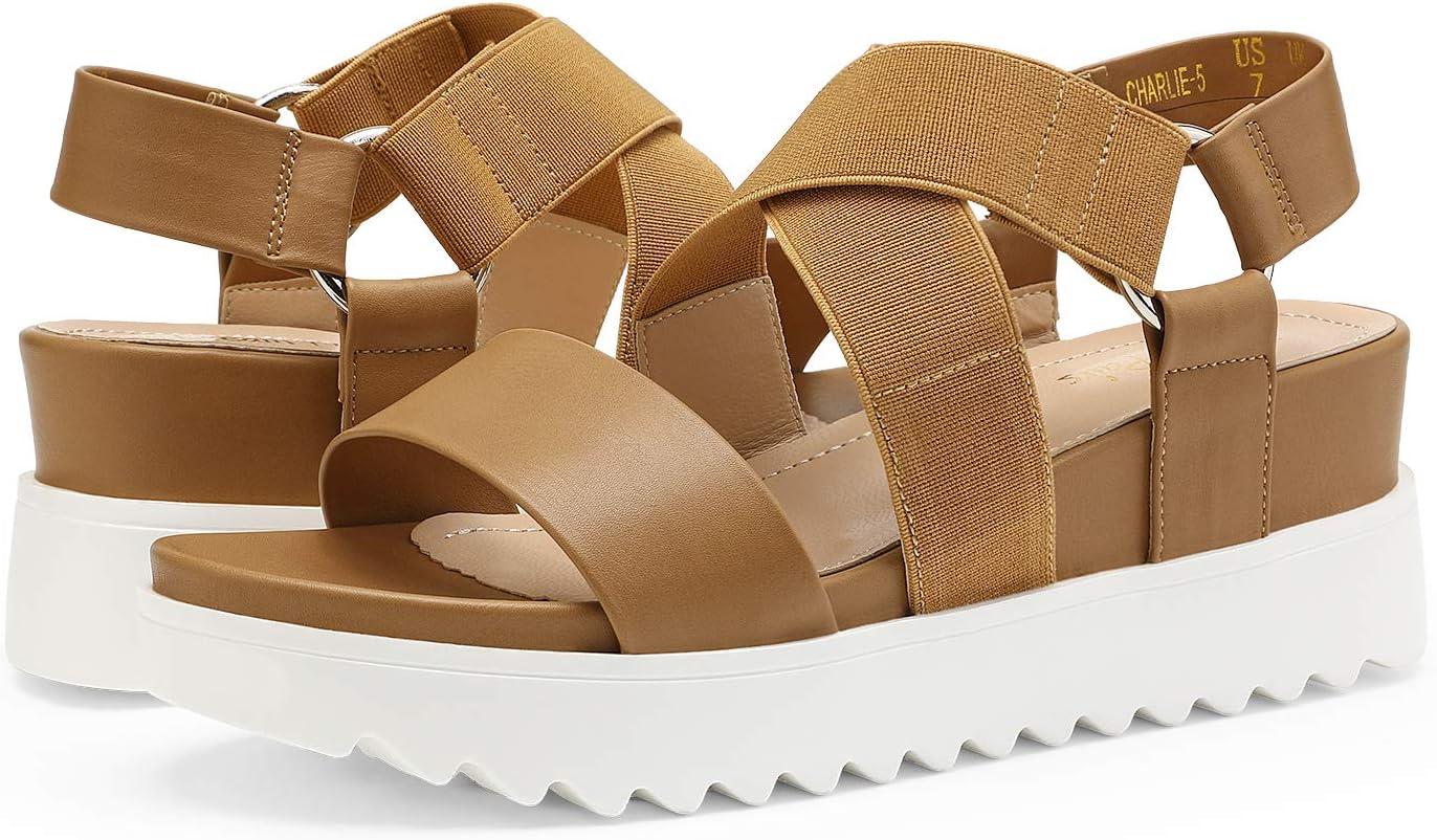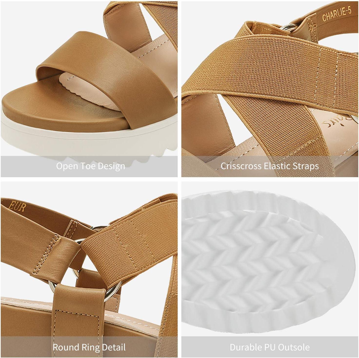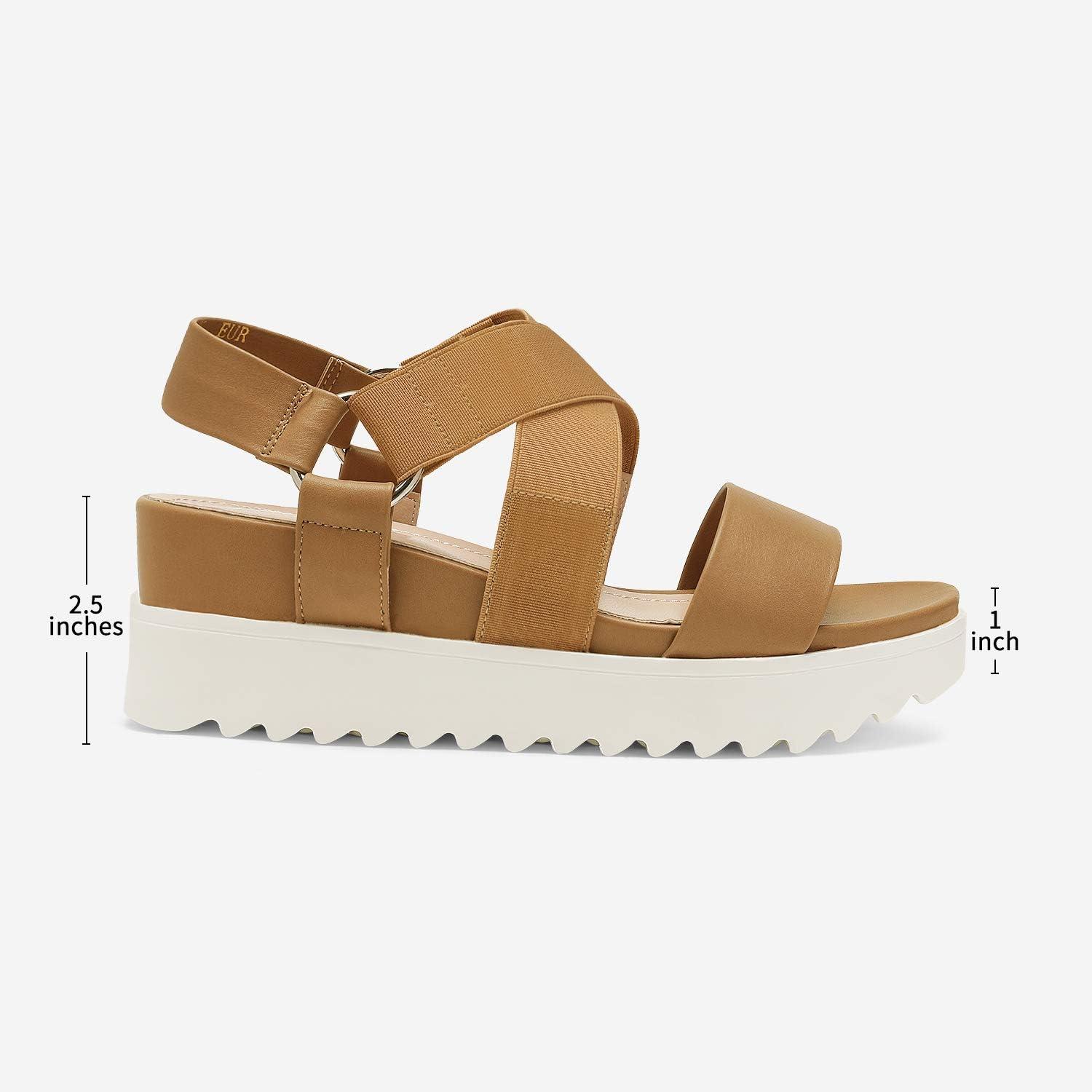 DREAM PAIRS Women’s Open Toe Ankle Strap Platform Wedge Sandals(Camel)