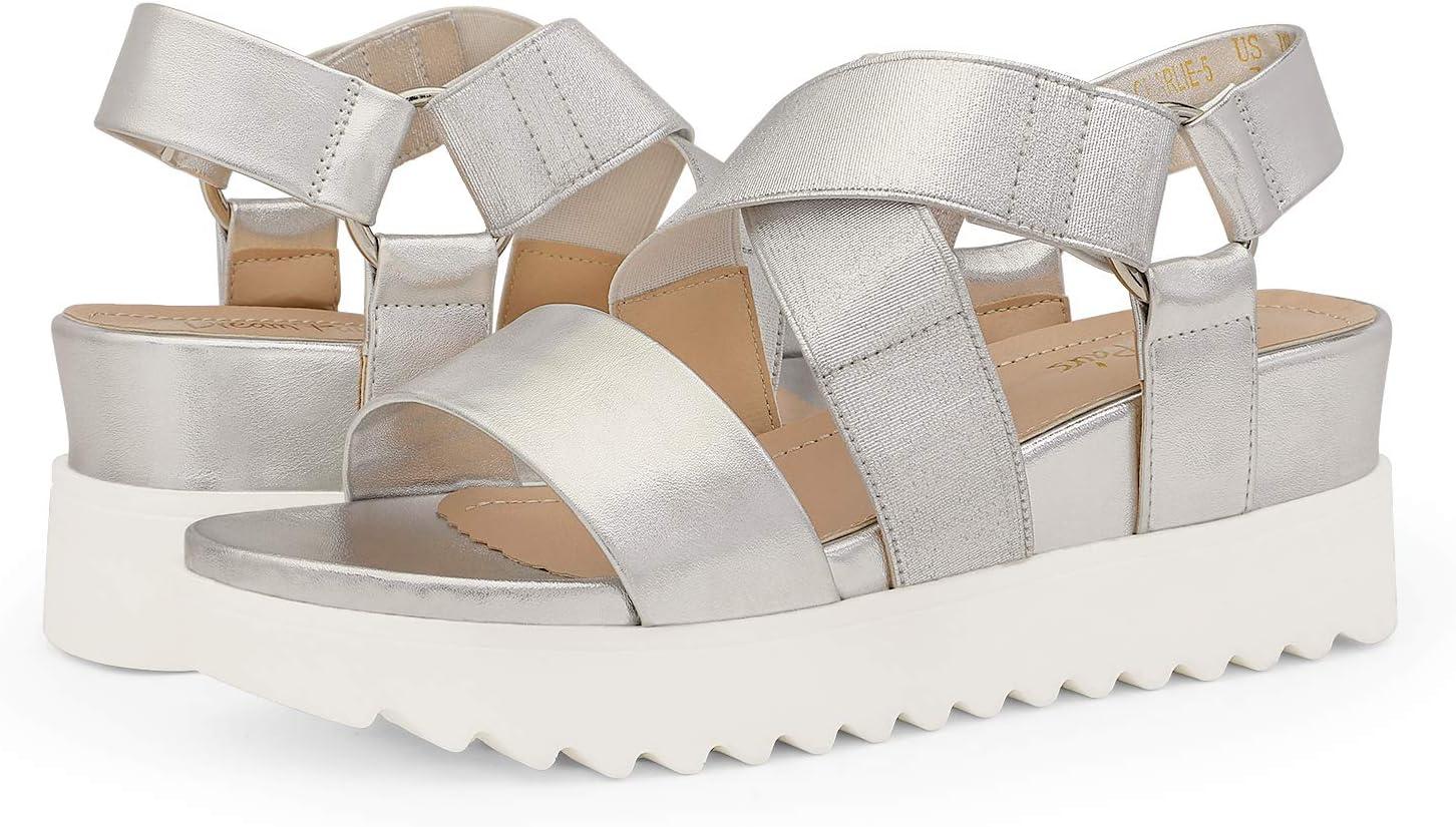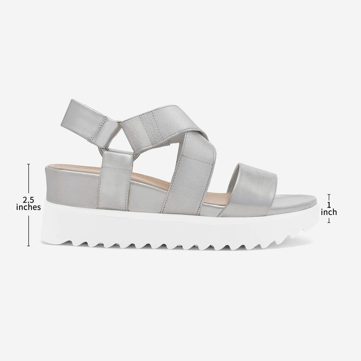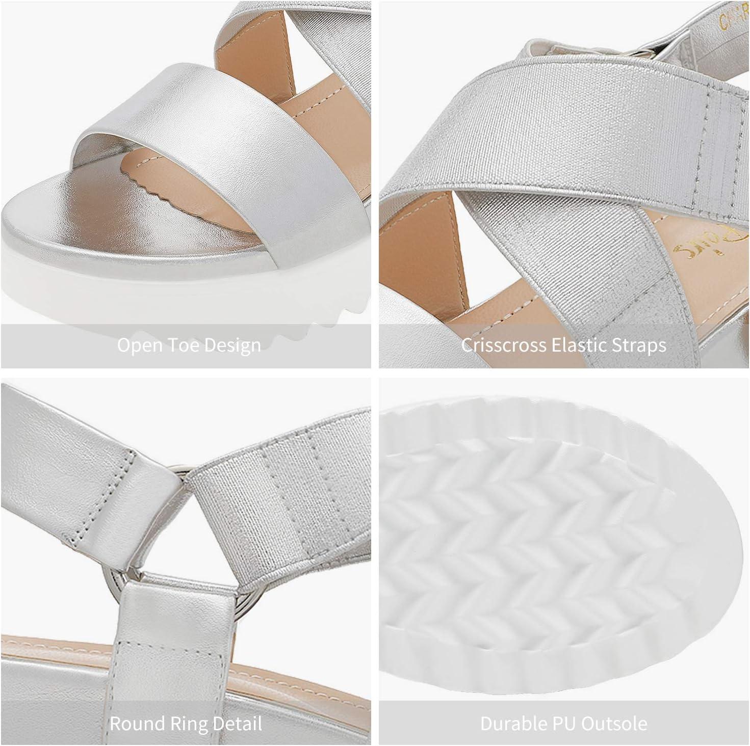 DREAM PAIRS Women’s Open Toe Ankle Strap Platform Wedge Sandals(Silver)