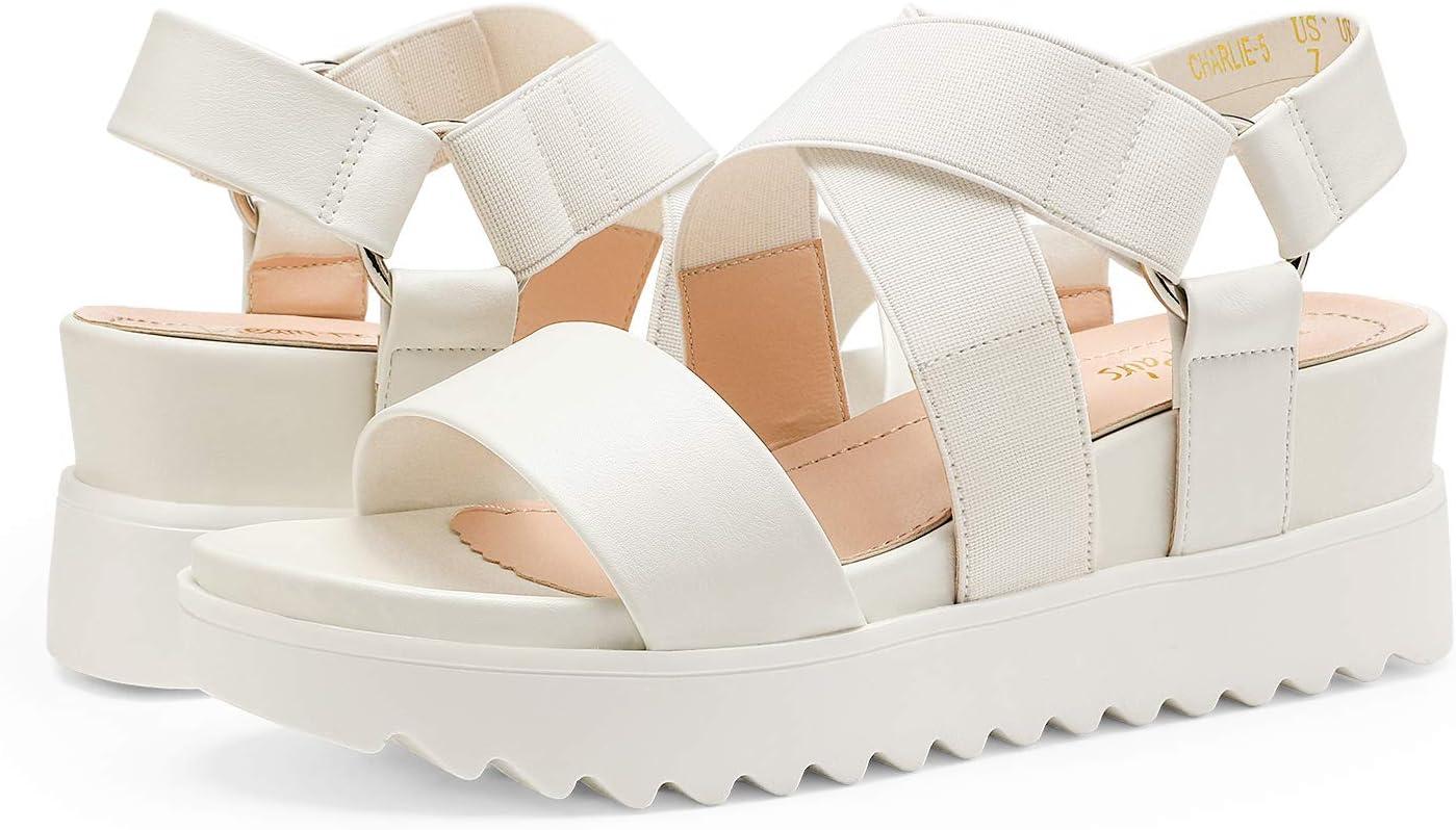DREAM PAIRS Women’s Open Toe Ankle Strap Platform Wedge Sandals(White)