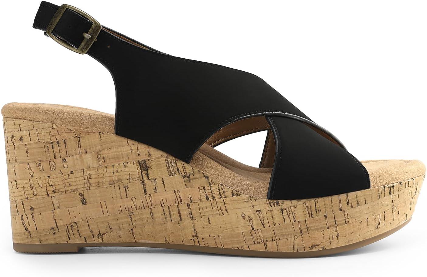 DREAM PAIRS Women’s Comfortable Arch Support Wedge Sandals Open Toe Summer Walking Shoe(Black)