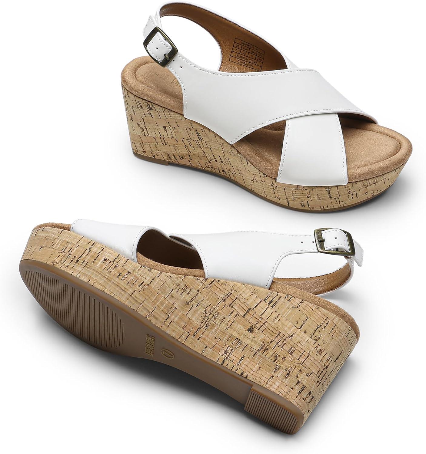 DREAM PAIRS Women’s Comfortable Arch Support Wedge Sandals Open Toe Summer Walking Shoe(White)
