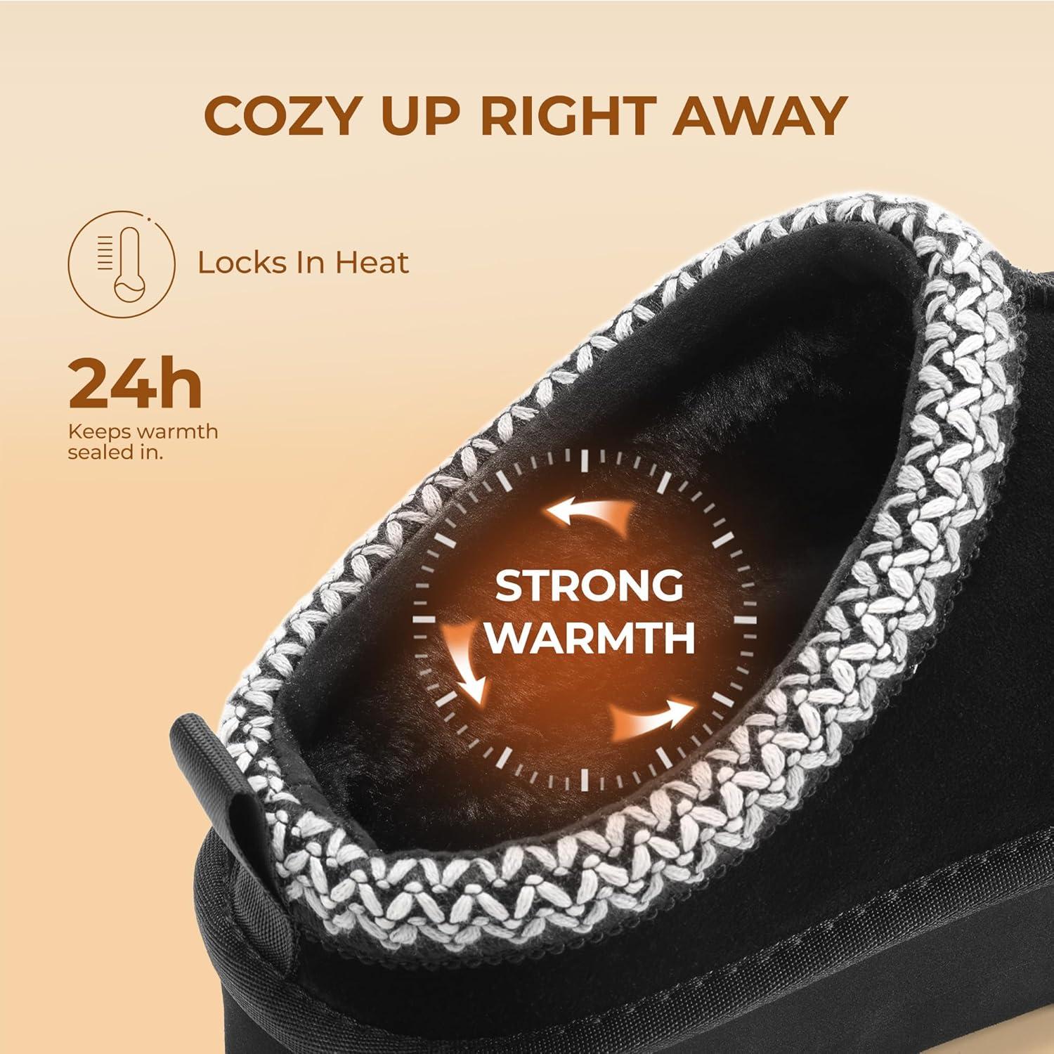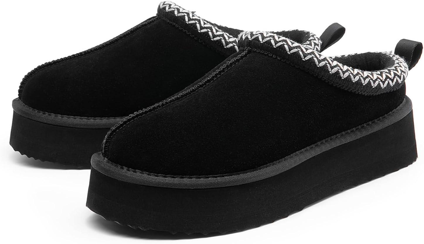 DREAM PAIRS Women’s Platform Slippers Genuine Suede Slip-on Warm FuzzyEasy Autumn Winter Fluffy Comfy Furry Shoes for Outdoor Indoor(Black)