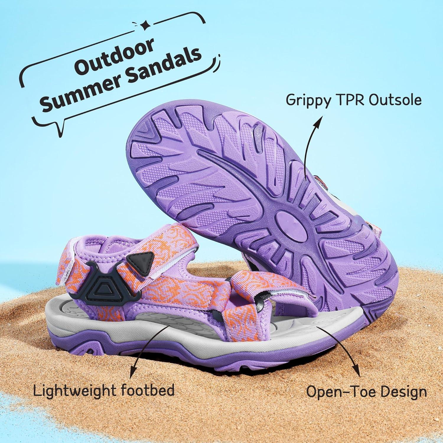 DREAM PAIRS Boys Girls Sandals Kids Adventurous Light-Weight Adjustable Straps Summer Sandals (Toddler/Little Kid/Big Kid)(Lavender/Orange)