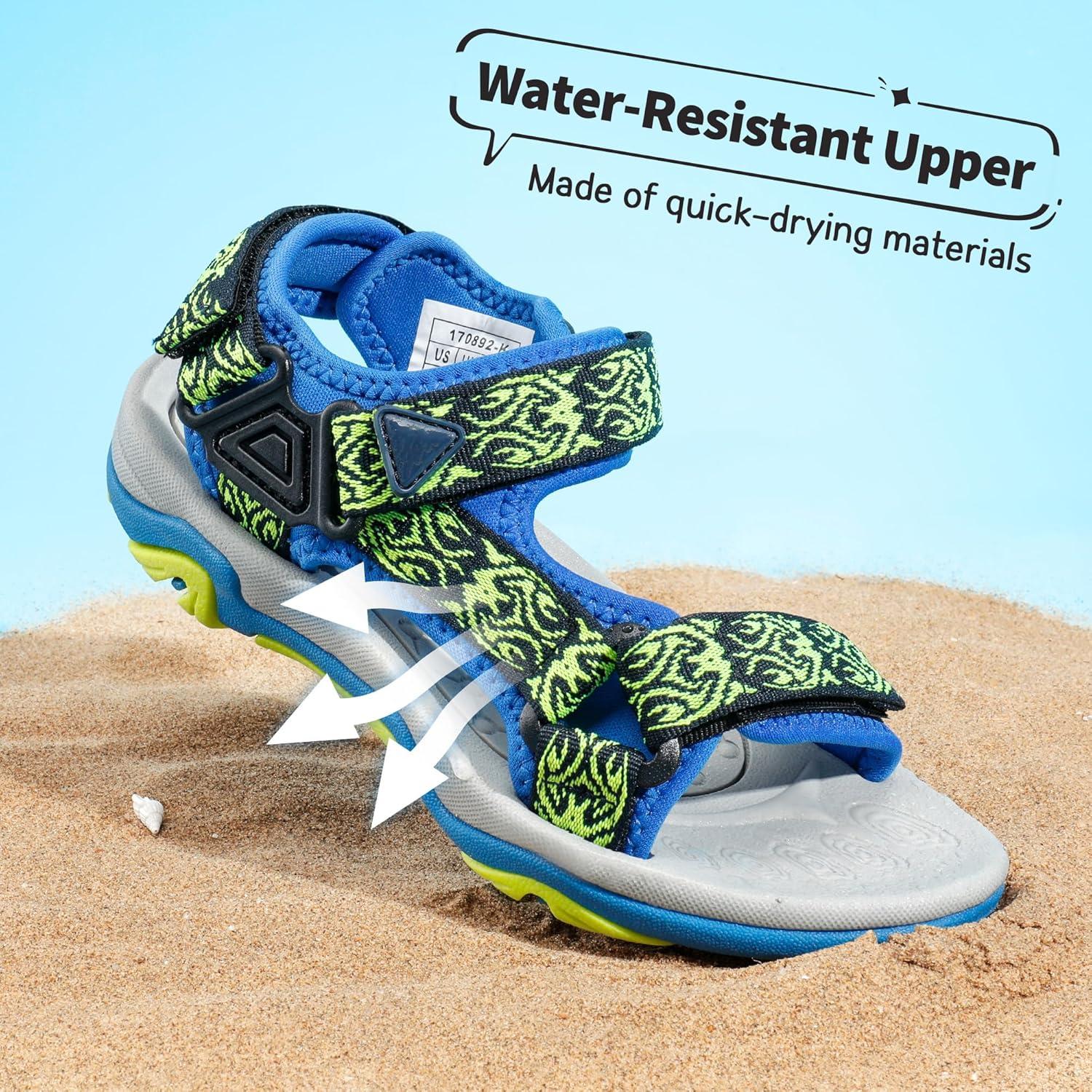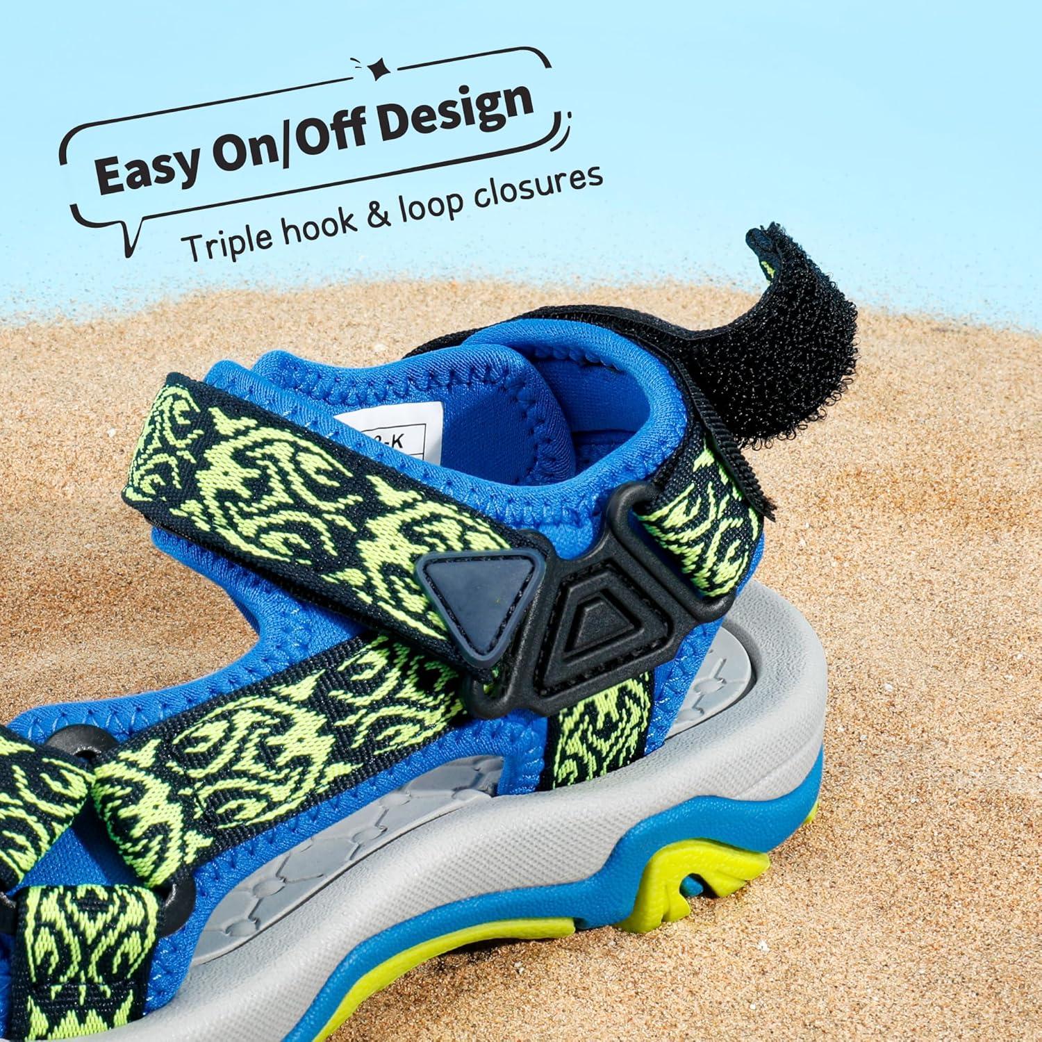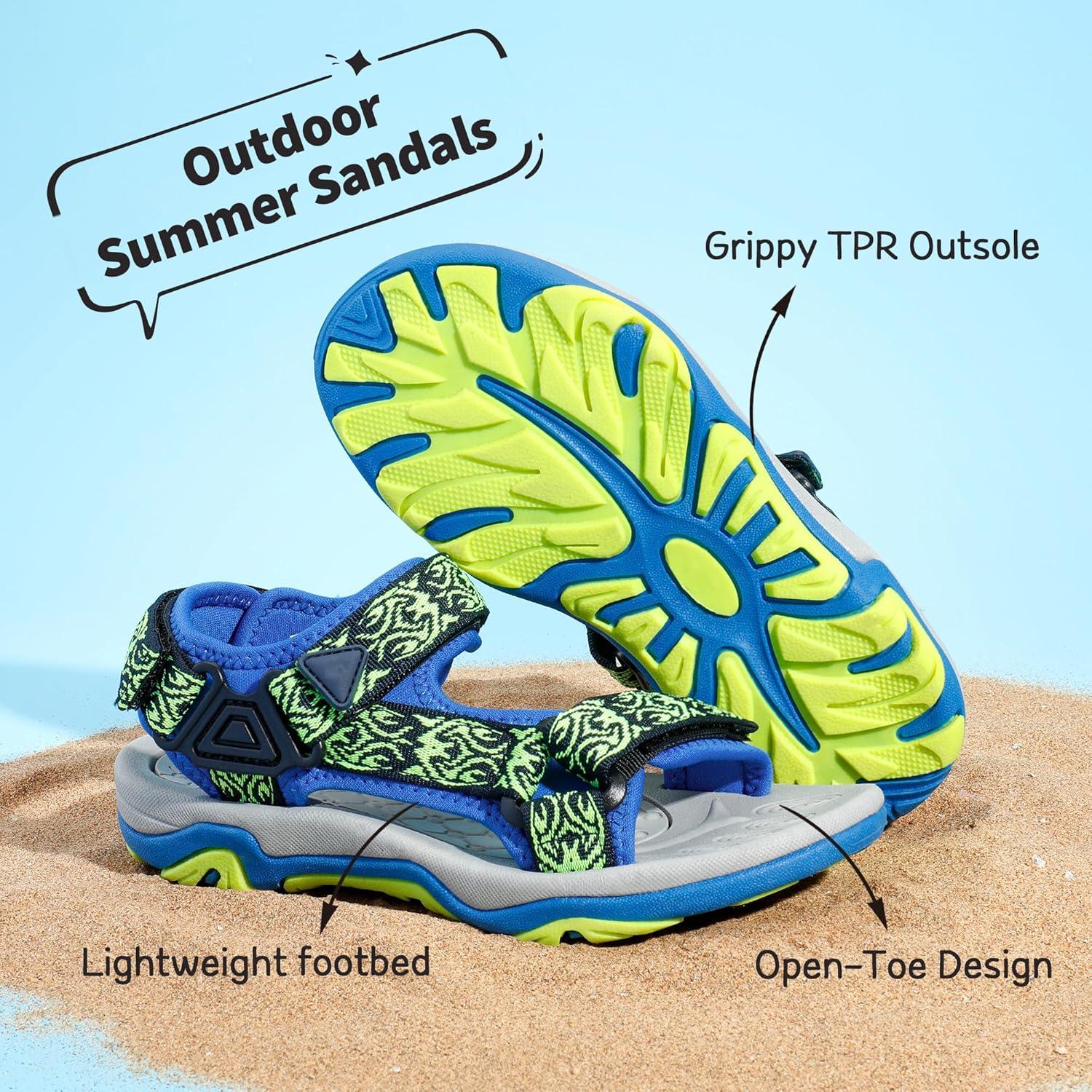 DREAM PAIRS Boys Girls Sandals Kids Adventurous Light-Weight Adjustable Straps Summer Sandals (Toddler/Little Kid/Big Kid)(Royal/Neon/Green)