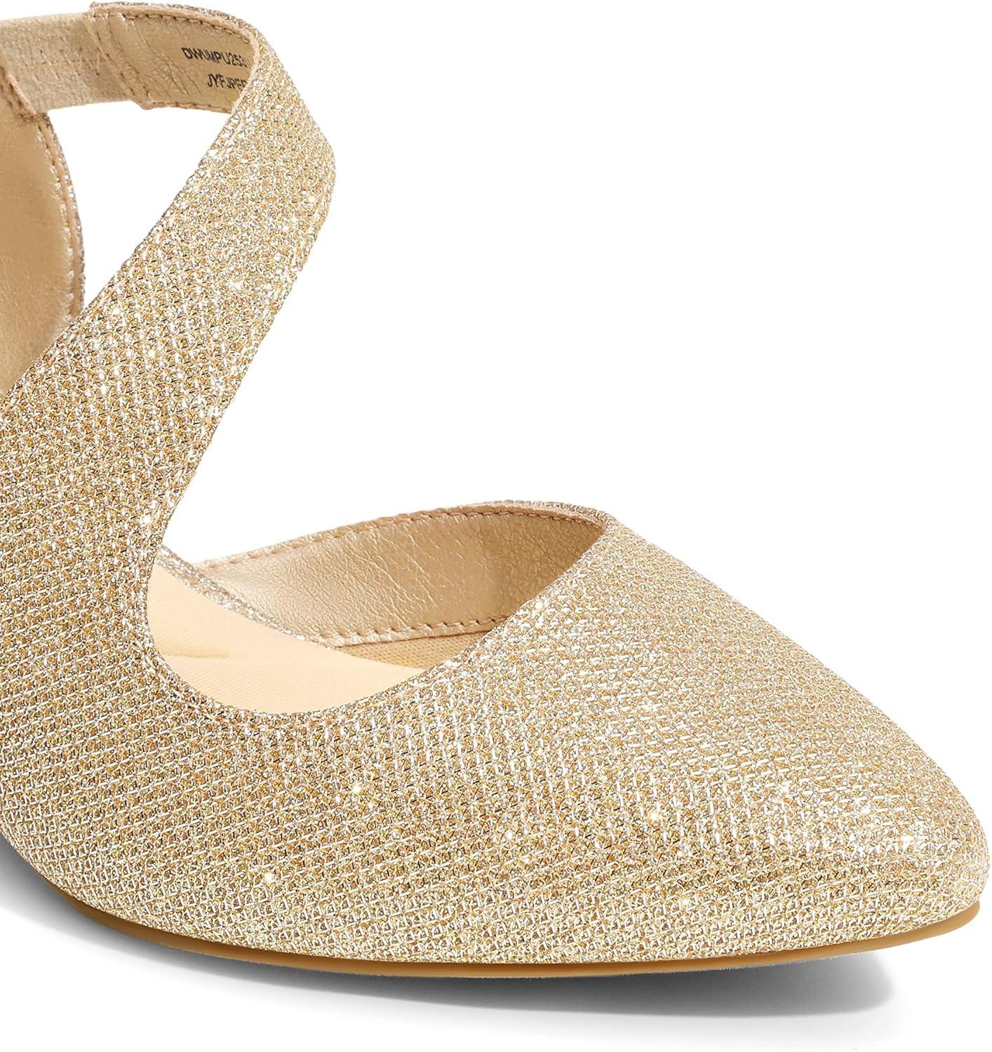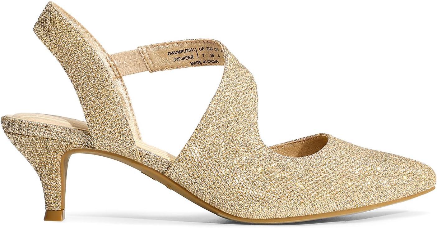 DREAM PAIRS Kitten Heels for Women Closed Toe Pointed Toe Low Heel Strappy Pumps Party Dance Wedding Dress Shoes for Women(Gold)