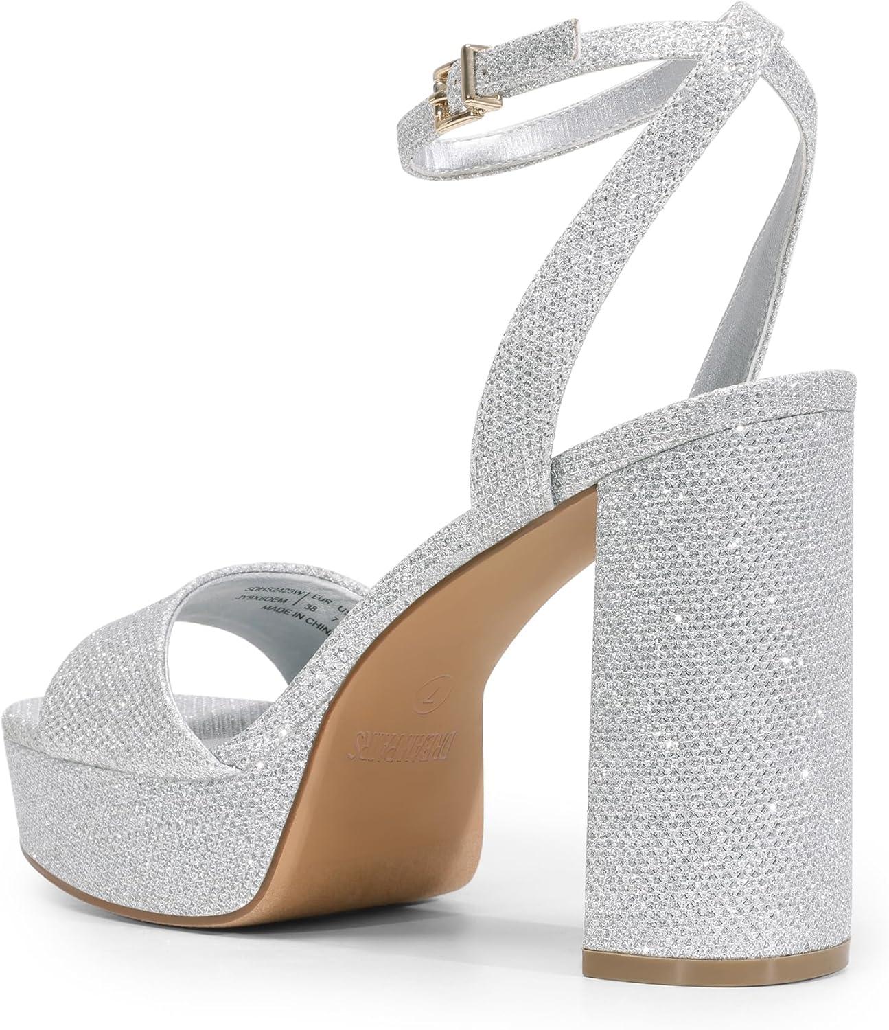 DREAM PAIRS Platform High Heels for Women Chunky Round Open Toe Ankle Strap Stylish Heeled Sandals for Party Prom Wedding(Silver-glitter)