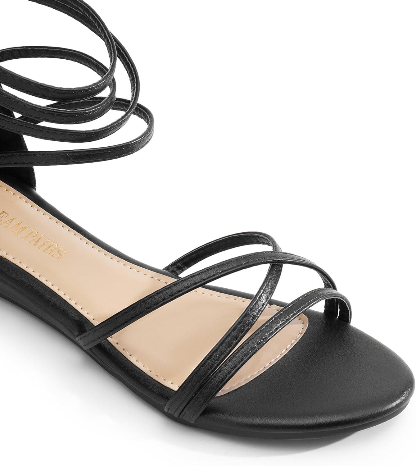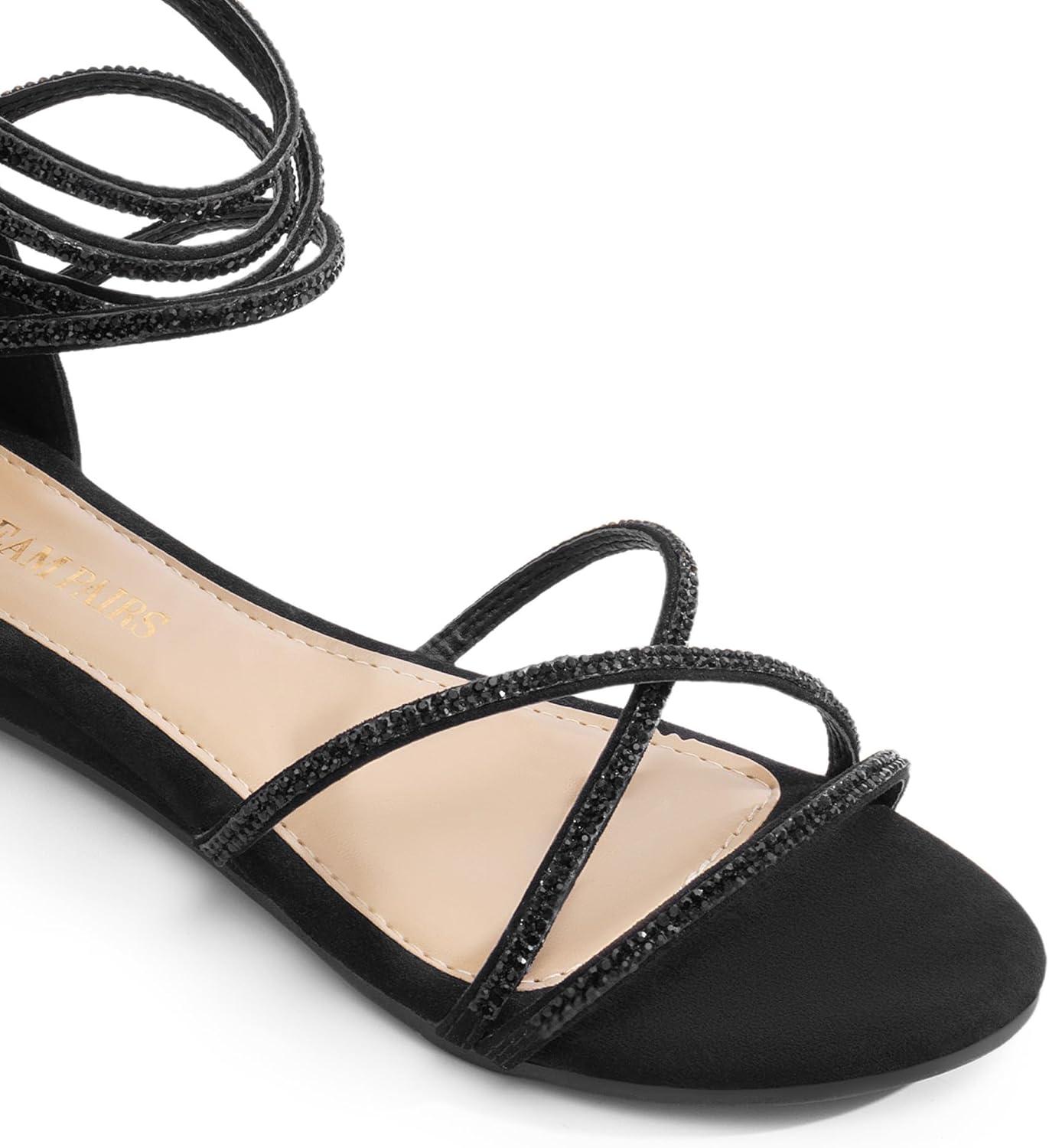 DREAM PAIRS Women’s Ankle Strap Flat Sandals Summer Dressy Strappy Gladiator Rhinestones Sandals(Black/Pu)