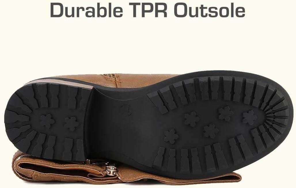 DREAM PAIRS Women’s Knee-High Boots Comfortable Chunky Block Heel Round Toe Side Zipper Riding Fashion Buckles Biker Motorcycle Boots(Tan)