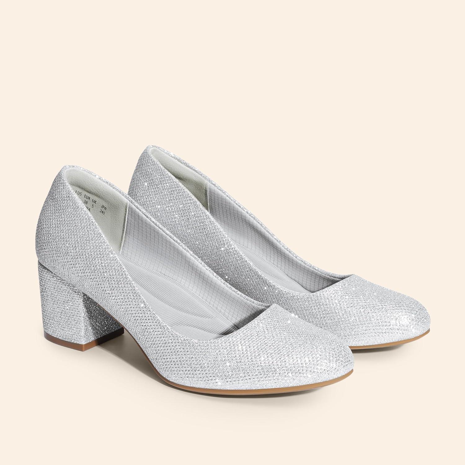 DREAM PAIRS Women’s Pumps Low Chunky Block Heel Dress Shoes Closed Round Toe Comfortable Heels(Silver)