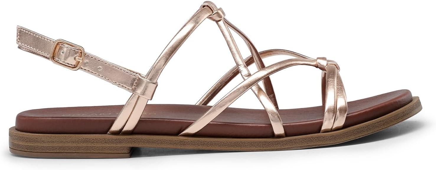 DREAM PAIRS Women’s Sandals Cross Strappy Gladiator Dress Flat Sandals Daily Casual Comfortable Summer Shoes(Rose Gold-pu)